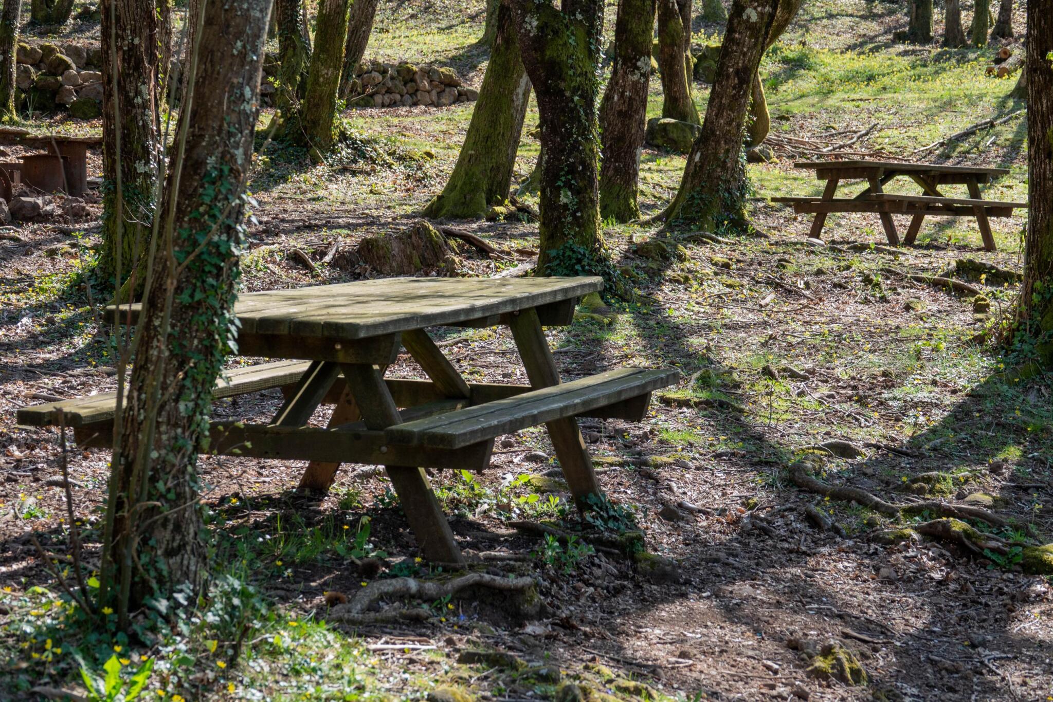 Aire de pique-nique se situant dans la Maison du Parc Naturel des Monts d'Ardèche près de la source du Peschier.