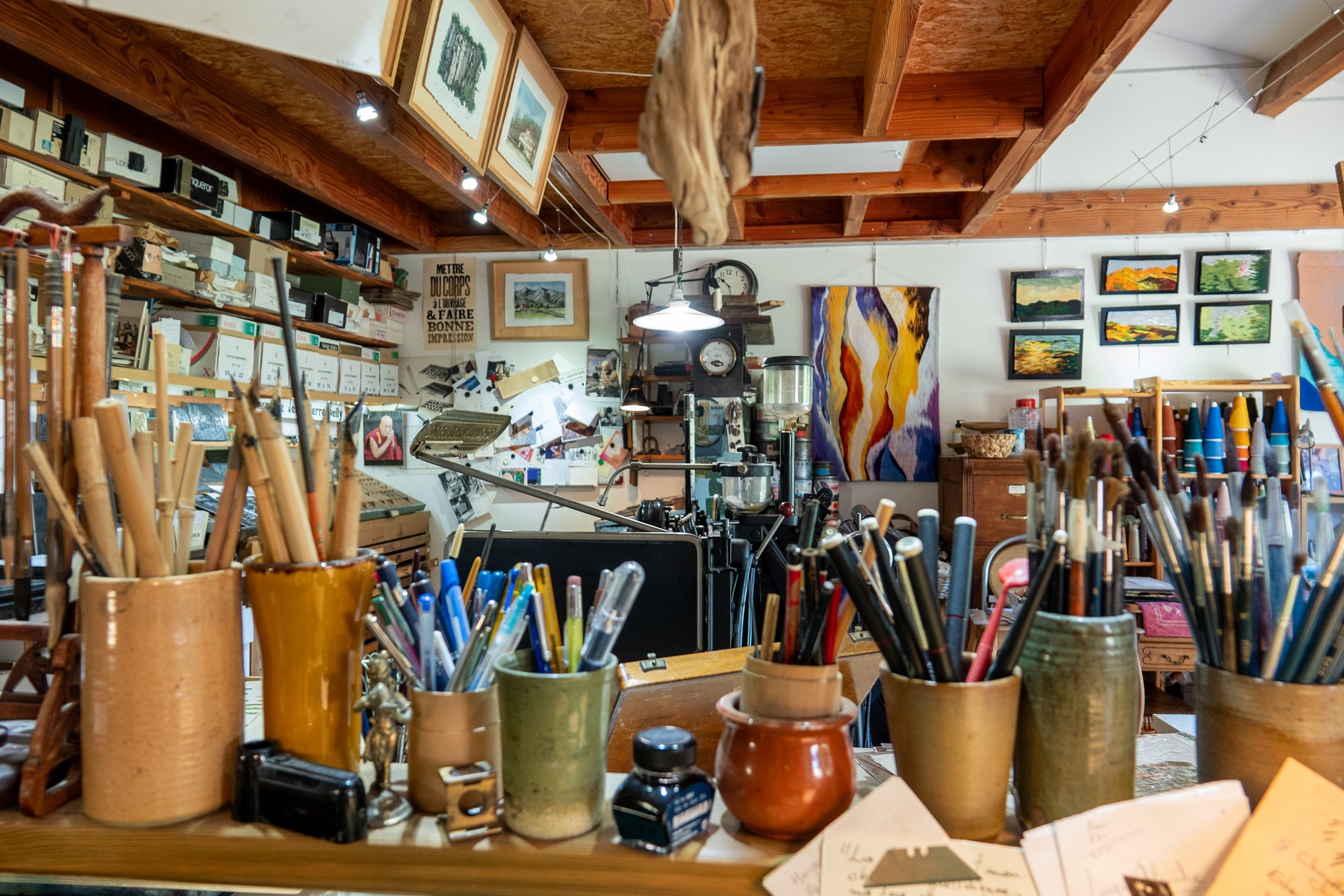 Atelier Passions Croisées réunit Elisabeth Roux et Daniel Van Cutsem, deux artisans d’exception. Elisabeth tisse des tapisseries haute lice sur métier vertical, Daniel crée des estampes en taille-douce. Découvrez en visite ou en atelier leur savoir-faire.