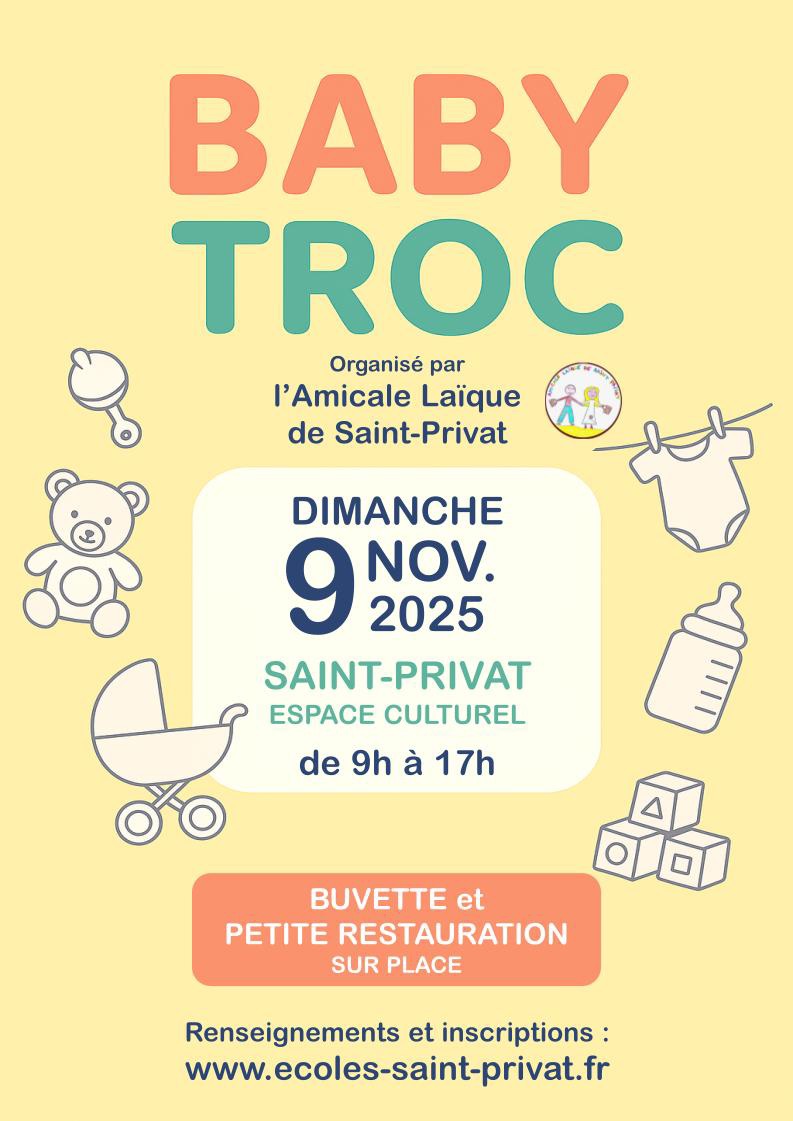 BABY TROC : Comme chaque année, l'Amicale Laïque de Saint-Privat organise son traditionnel Baby Troc !
