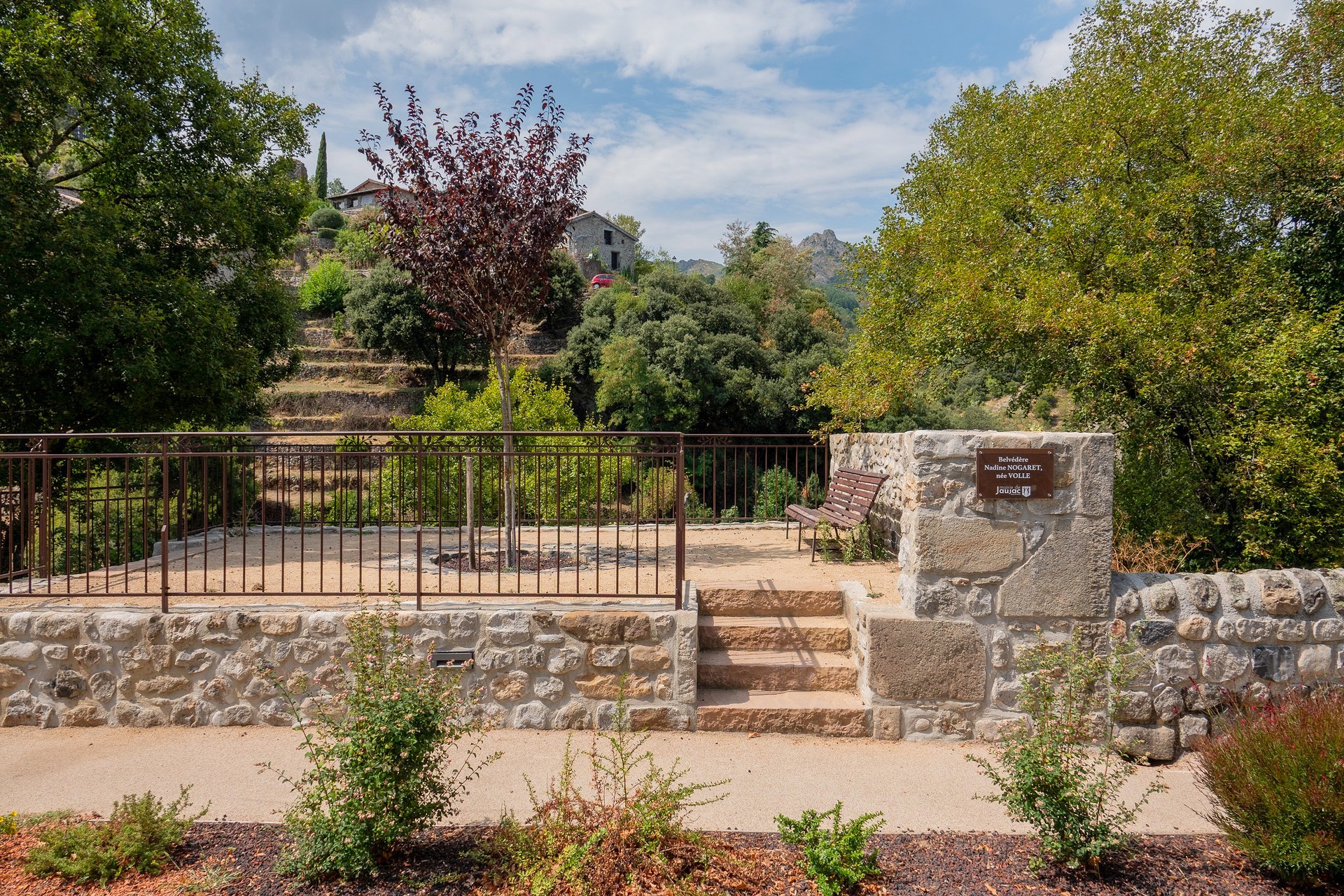 Le Belvédère Nadine Nogaret née Volle dispose d'un petit coin ombragé avec un banc afin de vous offrir une belle vue sur le quartier médiéval du Chastelas à Jaujac ainsi qu'une vue dégagée sur les pics de Ladenne et Courcoussat. Accès avec marches.