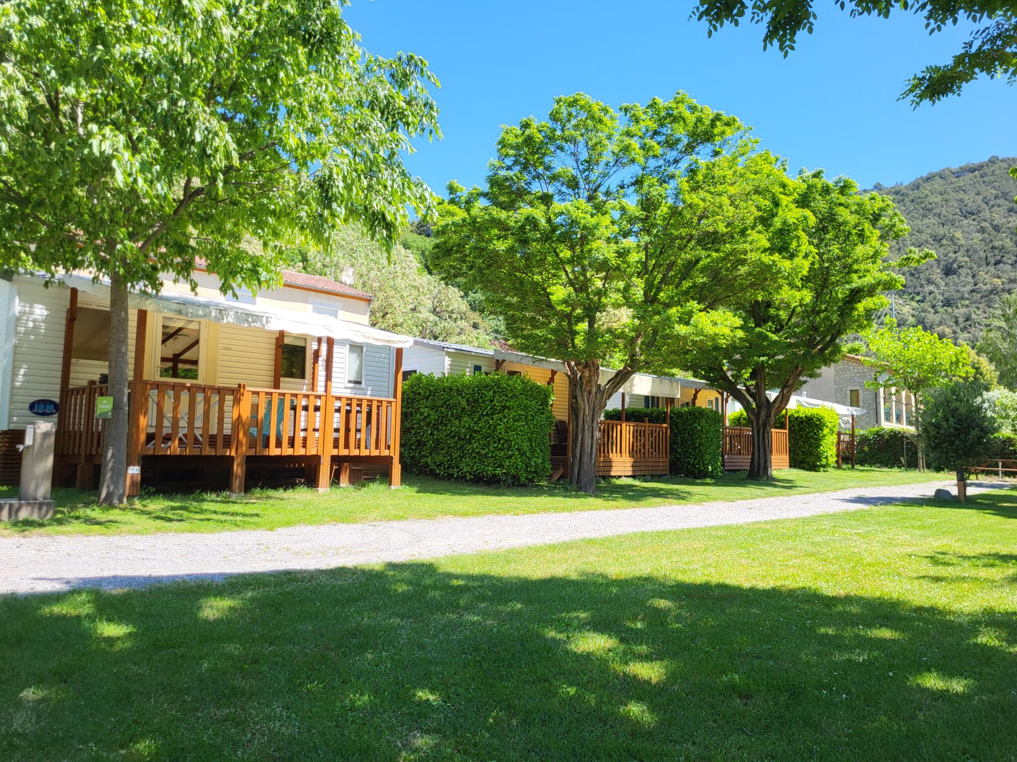 Camping familial, calme et ombragé, plage de sable privée le long de l'Ardèche. A proximité des sites touristiques et proche de tous commerces.