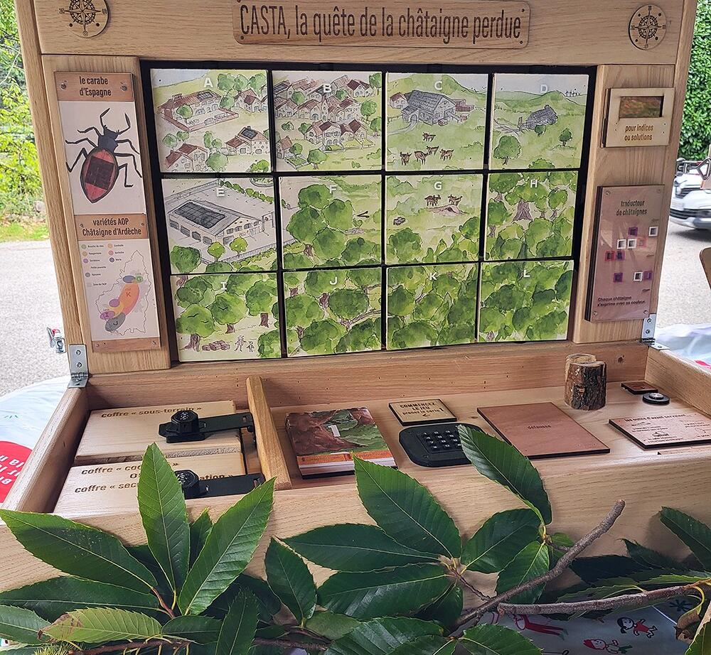 CASTA – La quĂŞte de la châtaigne perdue : Un jeu d’aventure grandeur nature oĂą les joueurs rĂ©solvent Ă©nigmes et dĂ©fis pour aider une châtaigne emportĂ©e par la tempĂŞte Ă retrouver son origine et arriver Ă temps pour la rĂ´tie. Ces jeux seront accessibles Ă tous et permettront de dĂ©couvrir la castanĂ©iculture de manière ludique.