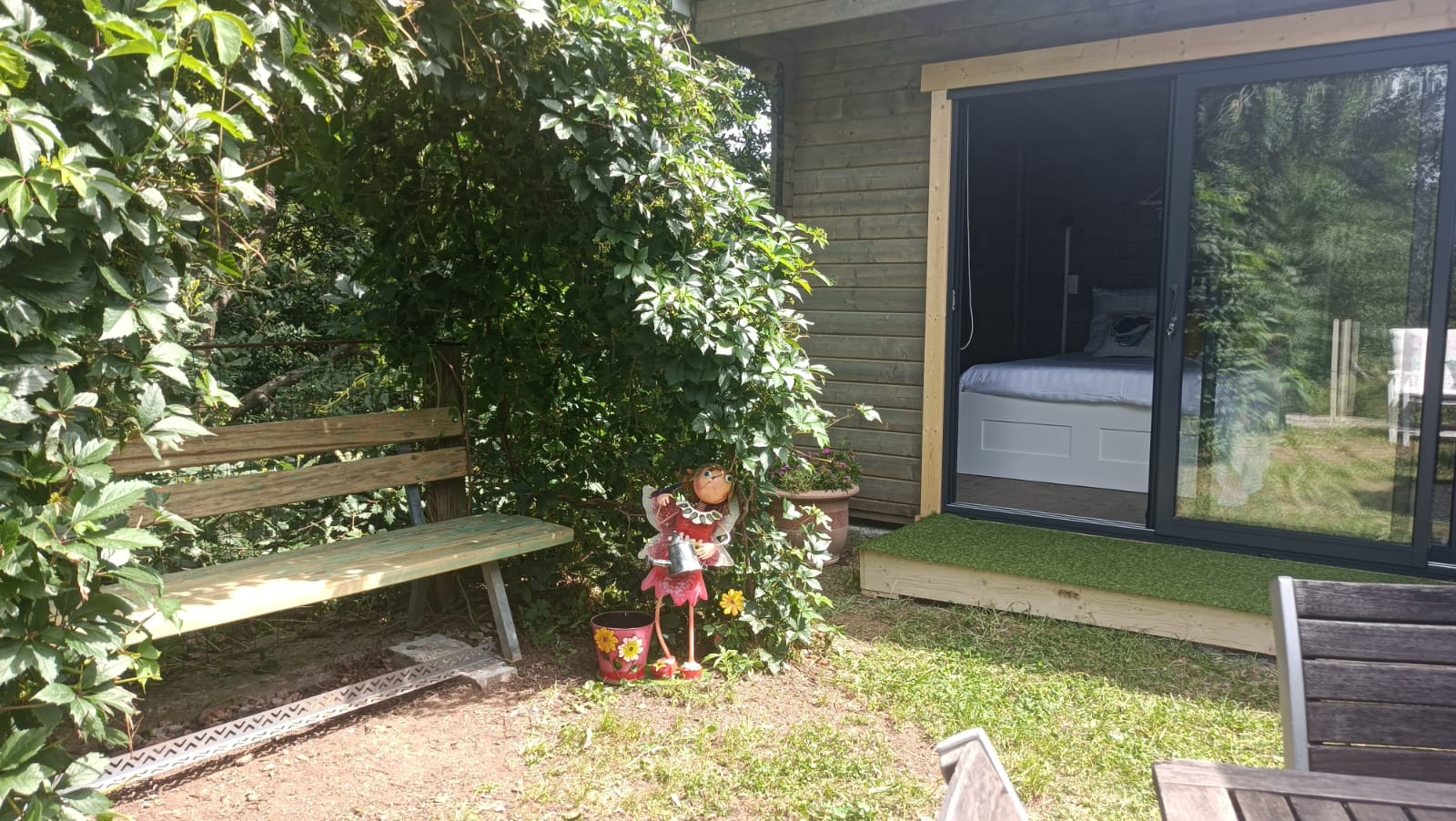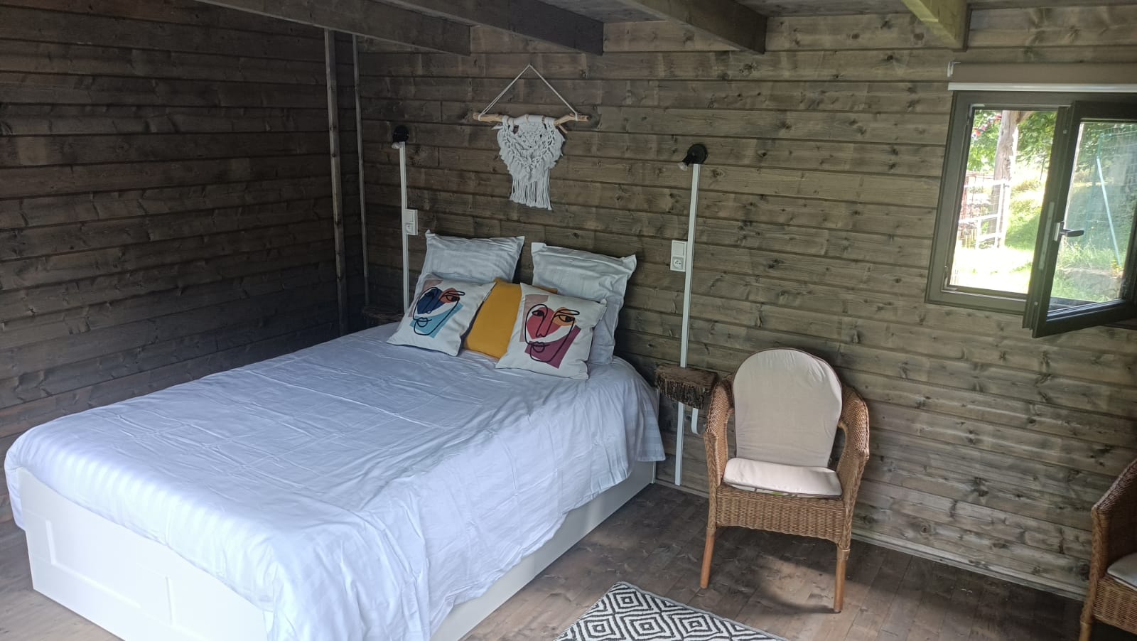 Hébergement de 2 couchages à proximité du village 300m environ,. Le chalet est équipé d'un lit confortable, d'une décoration choisie avec soin faite par une créatrice locale, d'un extérieur avec mobilier de jardin. A disposition et à votre usage privatif : toilette sèche, douche, évier avec eau courante, barbecue, petite vaisselle (assiettes, bols, verres, couverts...).