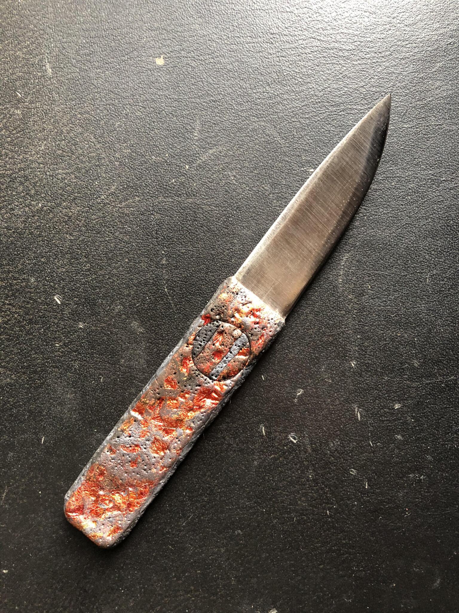 Il forge des outils en acier en carbone ou inox, lames maison depuis 1984. Passionné de cuisine, il aime fabriquer les couteaux de toutes tailles et de tradition en coopération avec les usagers. Un très grand choix de matériaux et de couleurs à la commande.