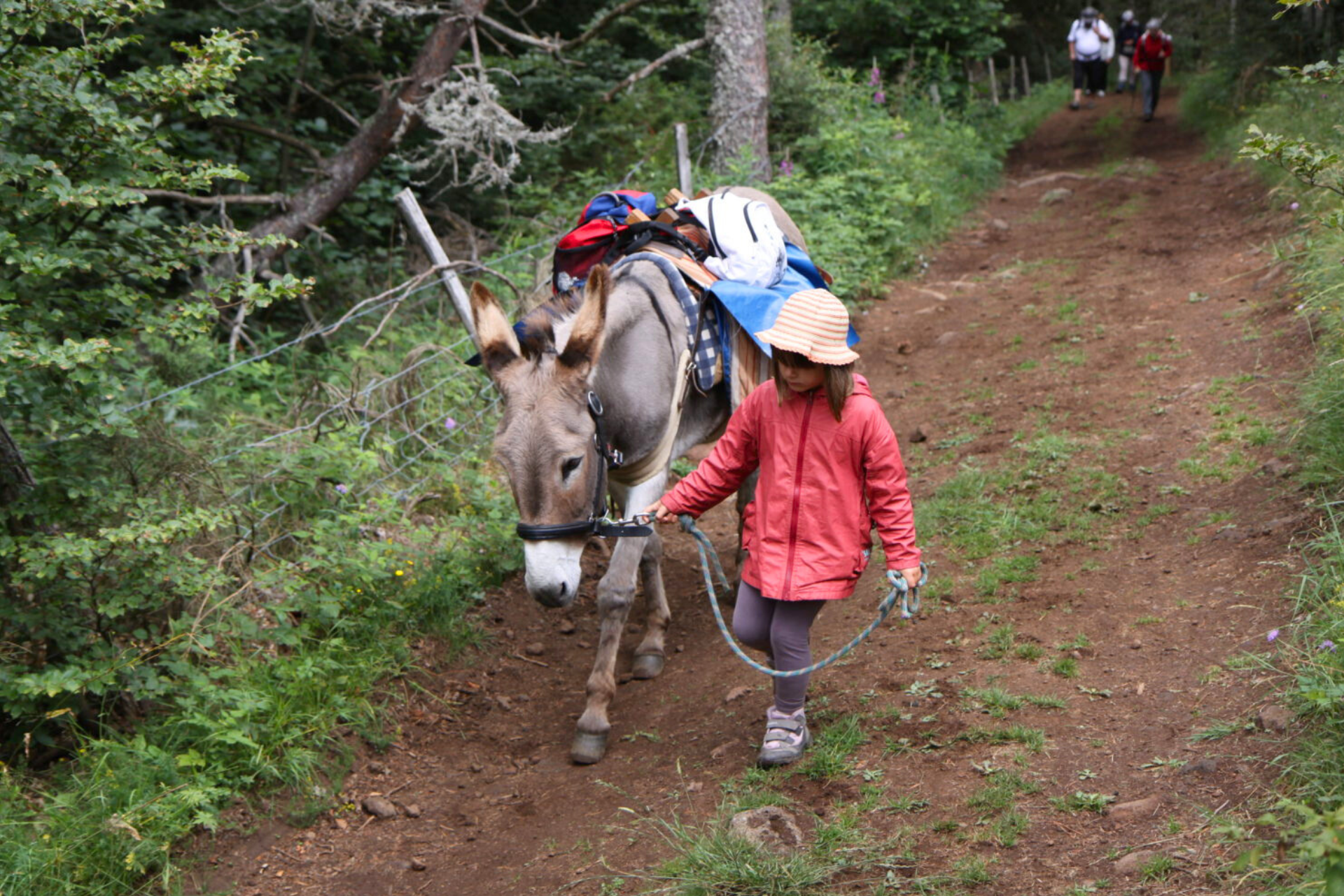 Wagen Sie eine Wanderung mit der ganzen Familie und einem Esel entlang der Wasserscheide und dem Fernwanderweg GR7, um die Kunstwerke der Kunstroute und die bemerkenswerten Landschaften am Rande des Zentralmassivs zu entdecken.