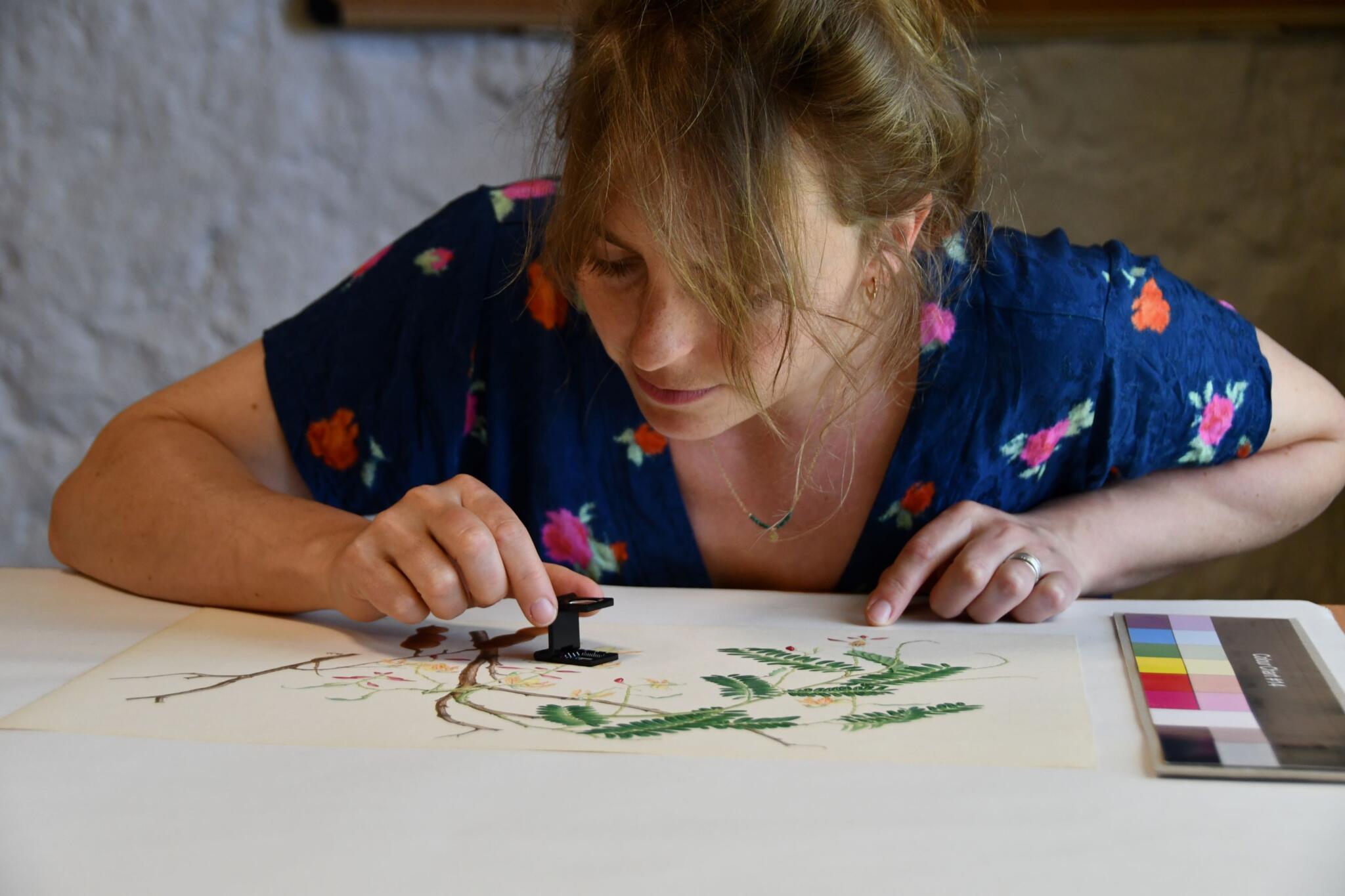 Julie ist Konservatorin und Restauratorin für Kulturgüter mit Spezialisierung auf Bücher und grafische Dokumente (Zeichnungen, Drucke, Plakate usw.). Sie behandelt auch Objekte aus Leder und Pergament.