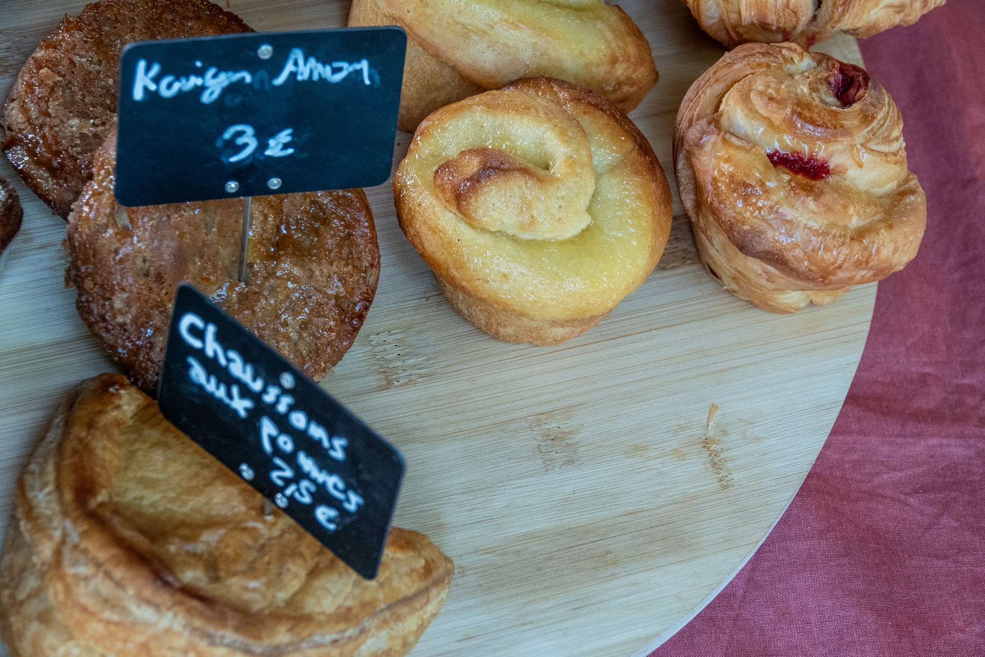 Soweit möglich verwenden wir für unsere Kreationen lokale Produkte: Bio- und AOP-Kastanienmehl, regionales Weizenmehl, Mazan-Tomme, Bio- und AOP-Picodon, Ardèche-Berghonig, lokale Bio-Kräuter, frische Blaubeeren vom Plateau...