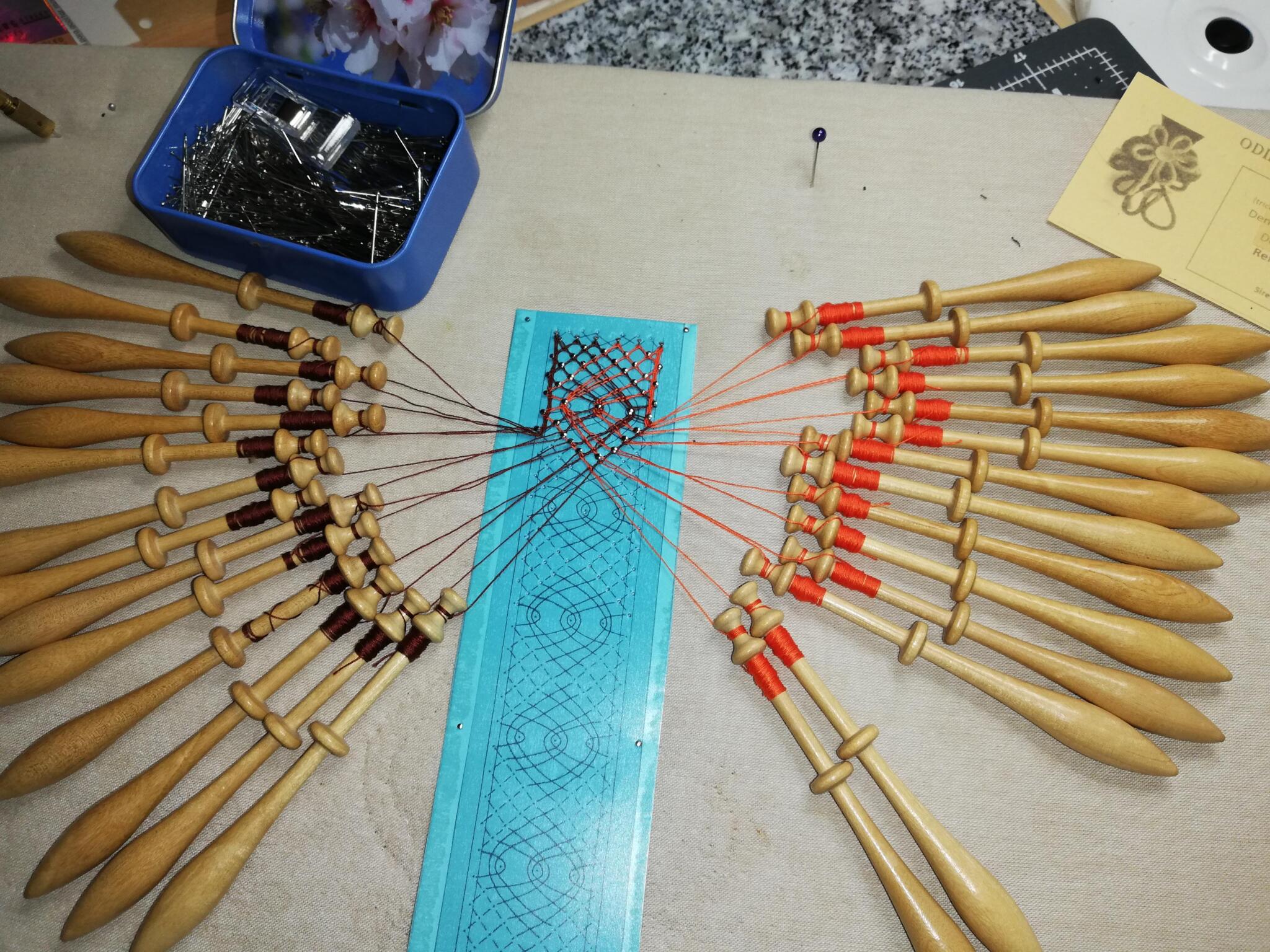 Seit einigen Jahren beschäftigt sich Odile auch mit Klöppeln und möchte die Grundlagen dieser alten Kunst weitergeben. Auf Märkten führt sie an ihrem Stand Vorführungen durch.