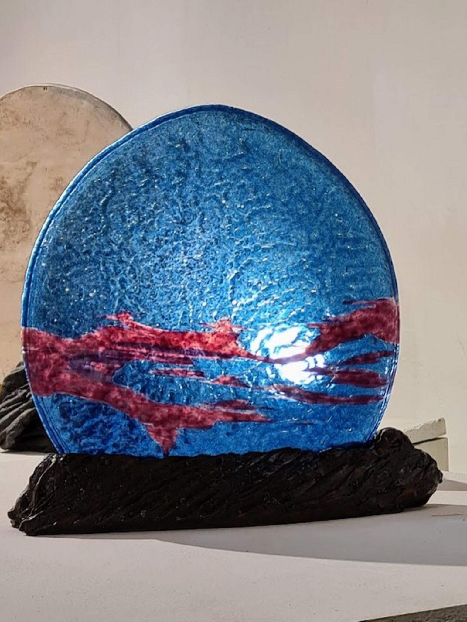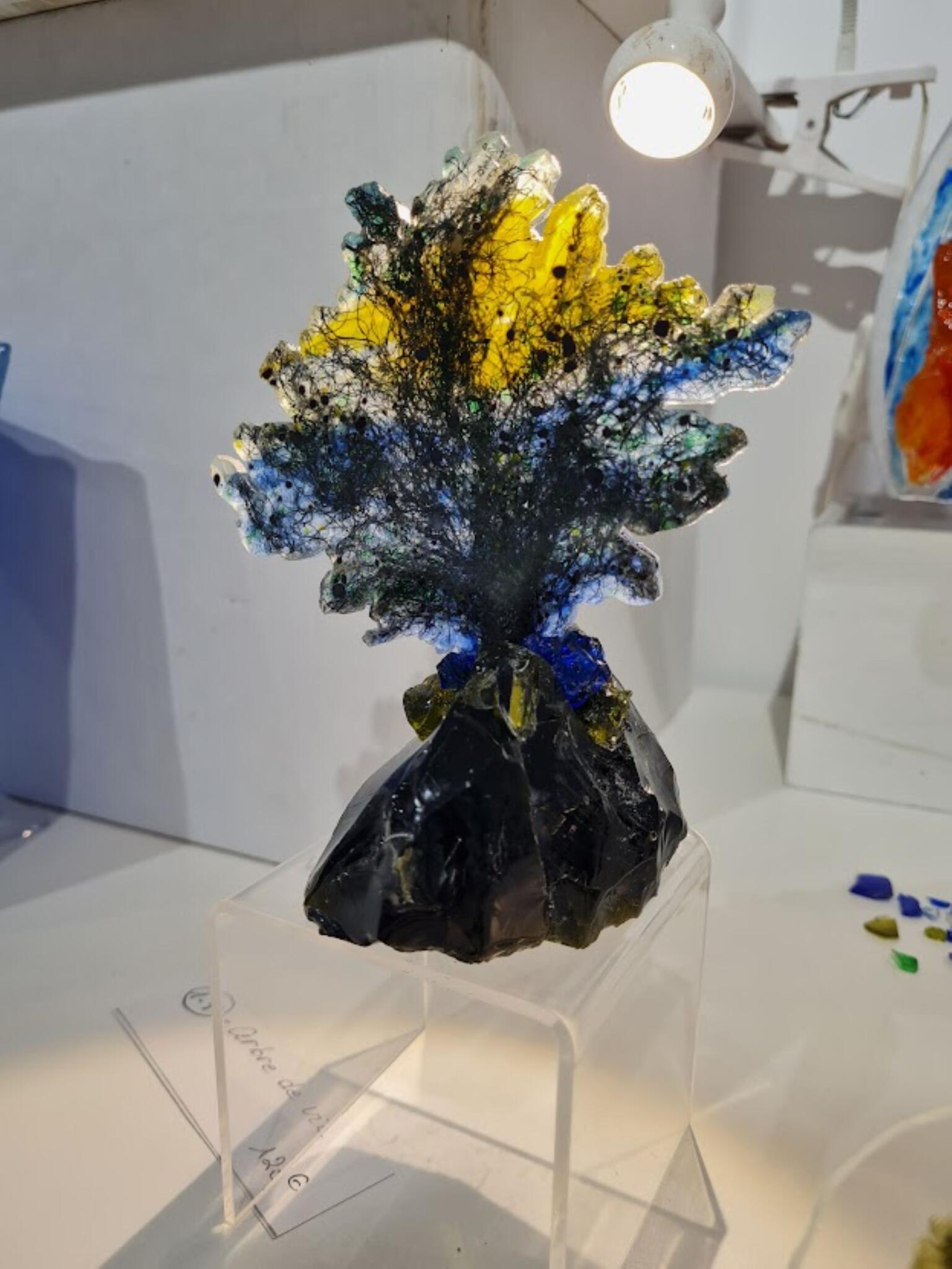 In seiner Werkstatt in Prades kreiert, empfängt und vermittelt L'Aure sein Know-how als Meister seines Fachs im Bereich der Glaskunst.