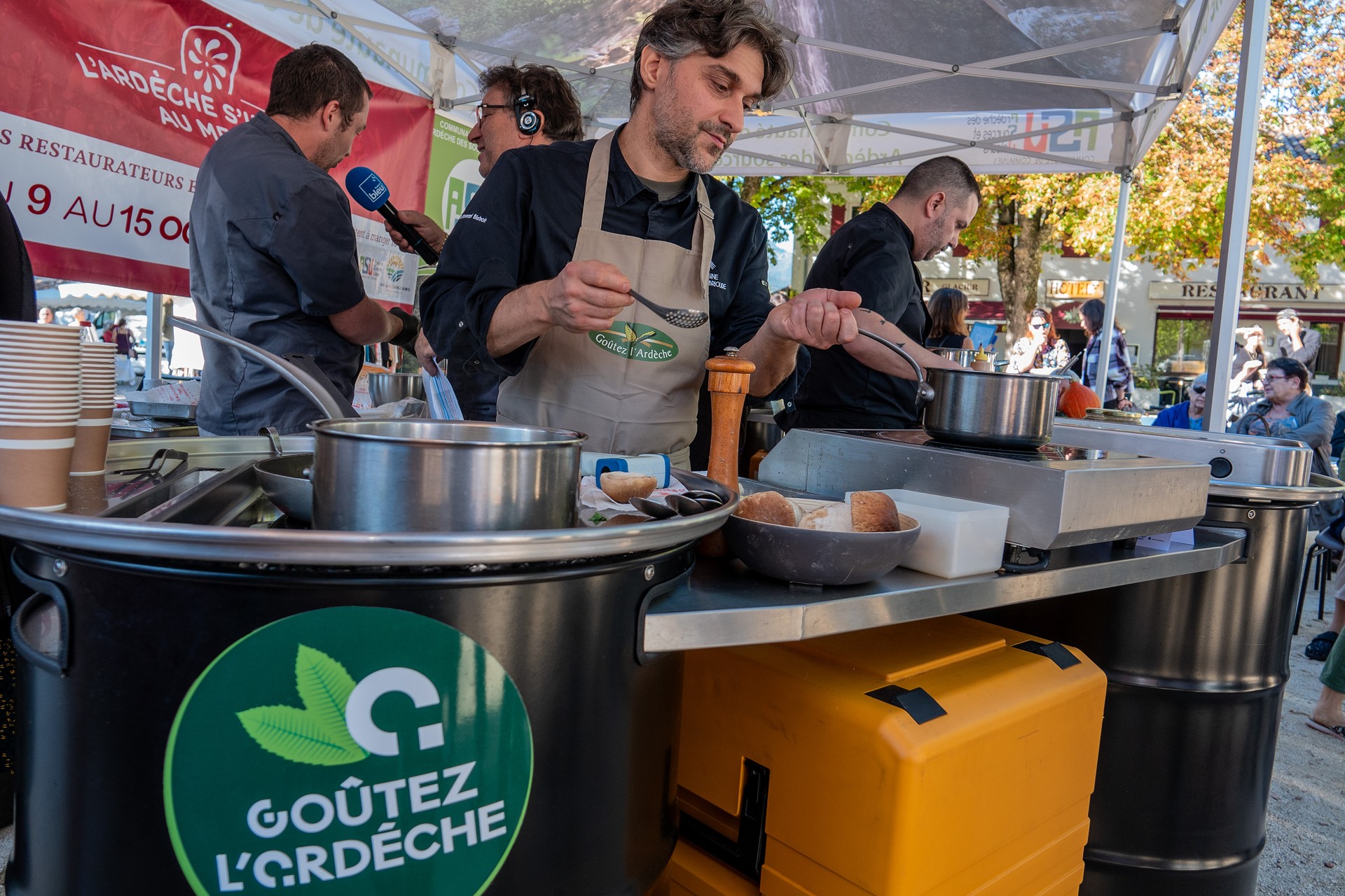 The aim of the ‘L'Ardèche s'invite au menu!’ event is to raise awareness among restaurant owners about local sourcing in order to increase the proportion of local products in the meals they serve, thereby supporting the local economy, promoting short supply chains and offering high-quality menus.