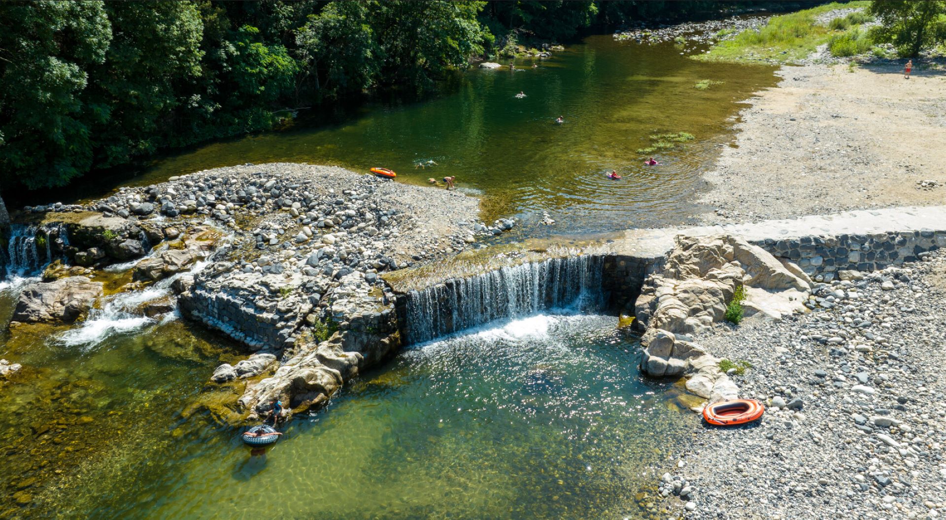 Family campsite*** on the edge of the Ardèche. Our major asset: natural swimming area with private beach and waterfall (unsupervised). Spacious, green pitches and modern, comfortable 1, 2 or 3-bedroom accommodation. Numerous sporting and cultural excursions nearby.