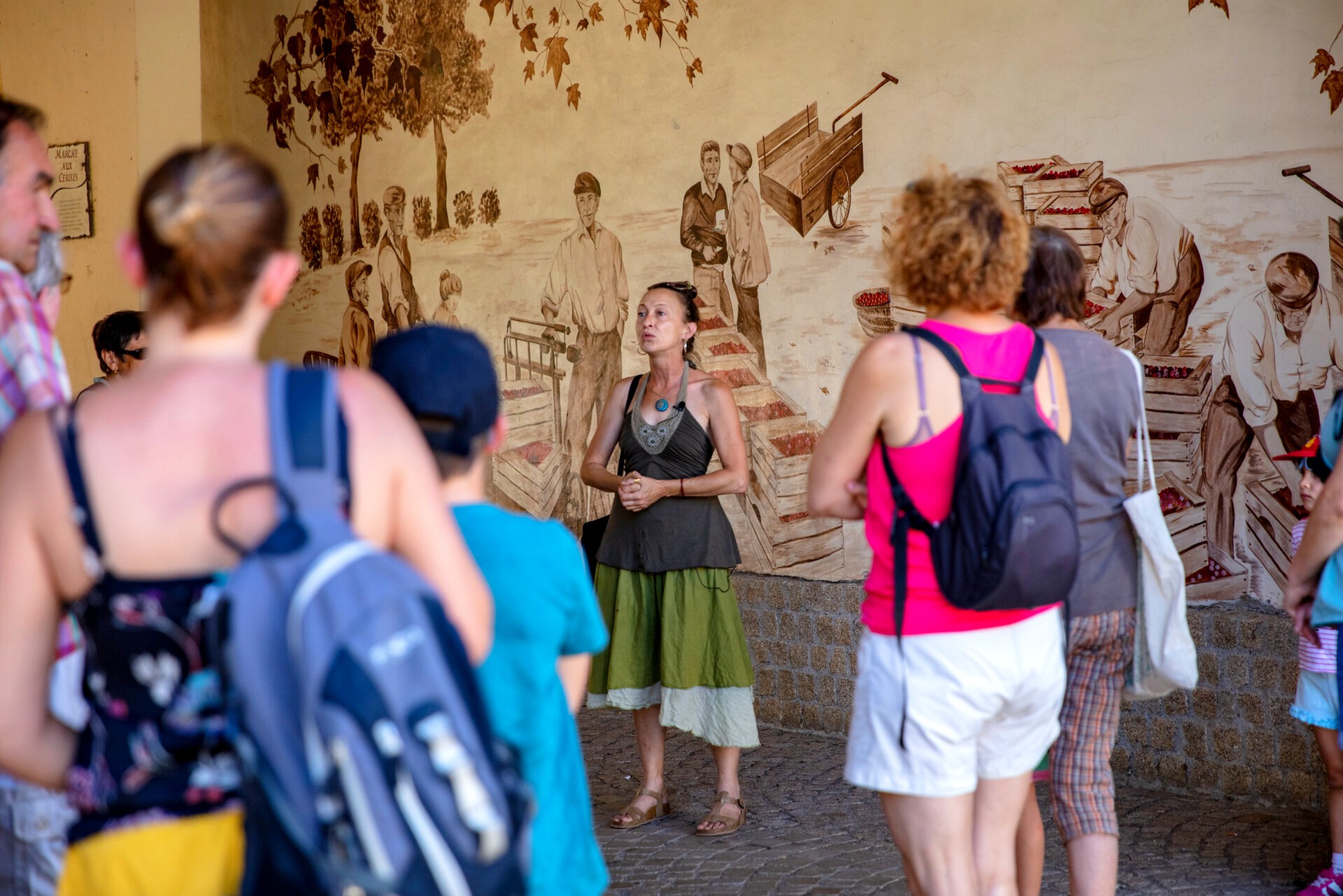 The cherry market in Thueyts recreates the famous fruit market where up to 50 tonnes of cherries could be sold! It took place until the 20th century. Thanks to its volcanic soil, Thueyts is ideal for fruit growing. Signed Mireille Bigot.
