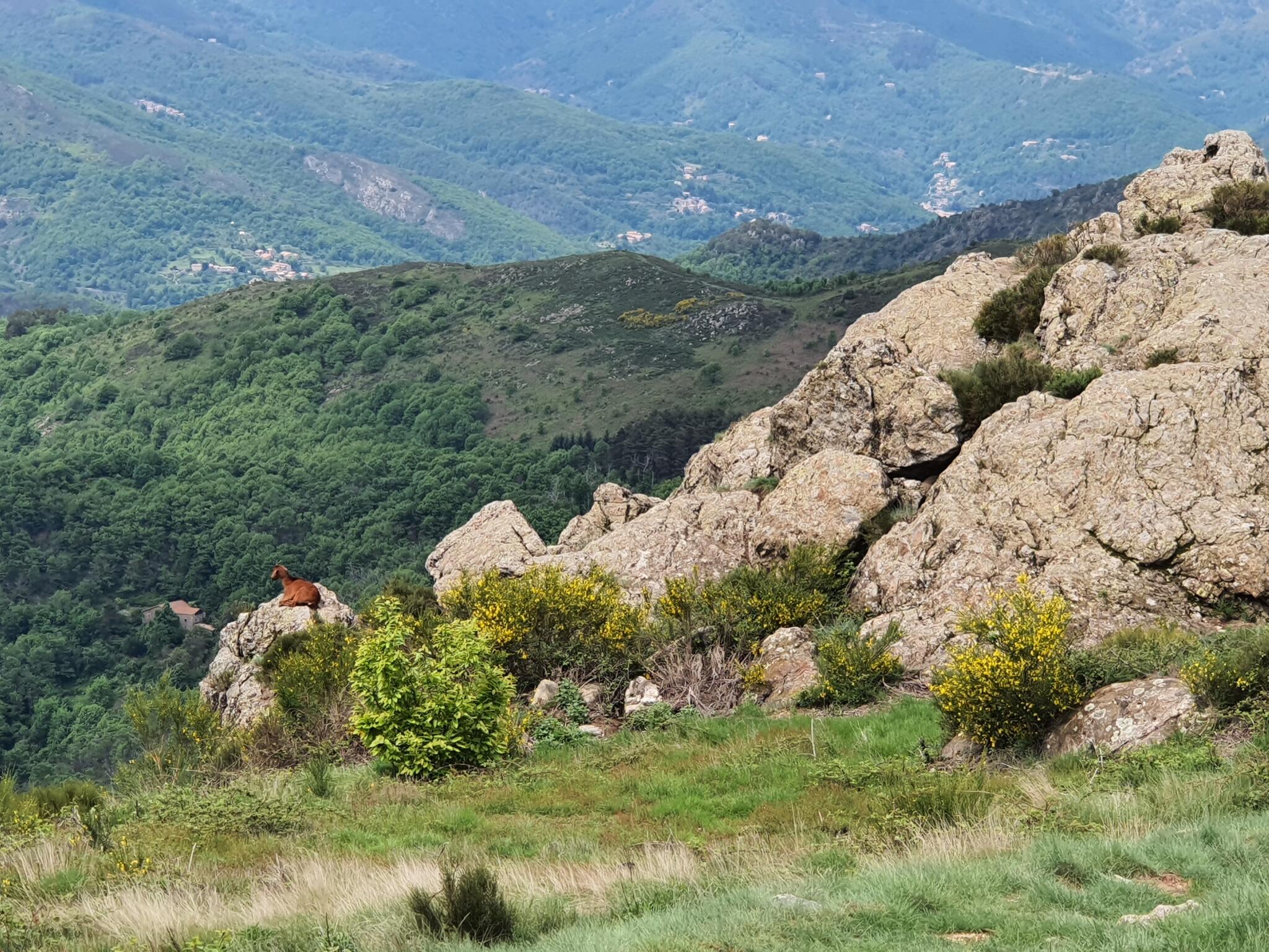 ③ Climb the trail to the left through the chestnut trees to the hamlet of la Combe. Follow the road and successively cross the hamlets of Aubignas and la Rabeyrie to reach the pass.