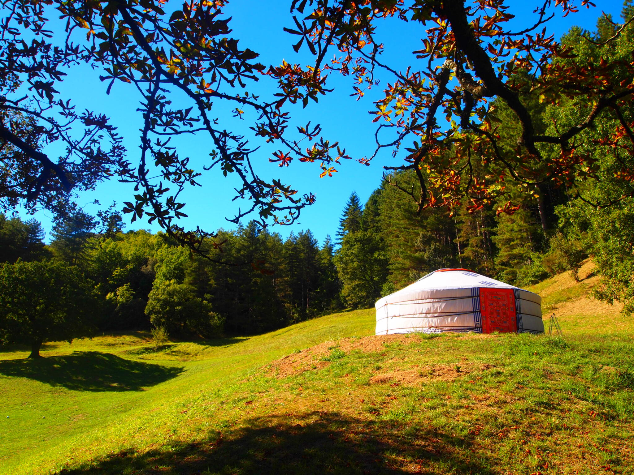 Halfway between the Gorges de l'Ardèche and Mont Gerbier de joncs, in the heart of the Regional Natural Park of the Monts d'Ardèche, we offer 3 unusual guest rooms: our mongolian yurt, our shady hut under the trees, our caravan, but also two country houses.