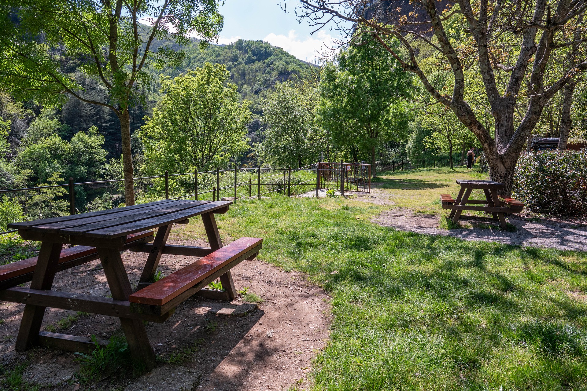 Picnic area before the Pont du diable in Thueyts, near the Devil's Bridge.