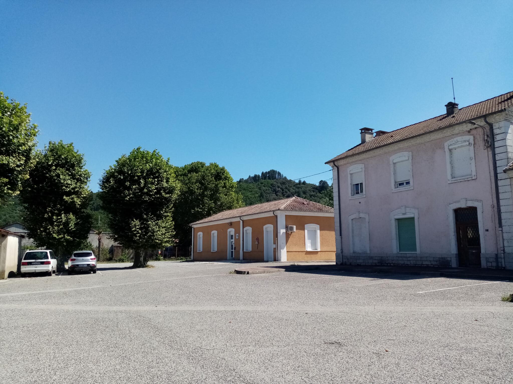 Car park and parking area with 25 spaces, including 2 spaces for people with reduced mobility, on the Place de la gare in Lalevade d'Ardèche.