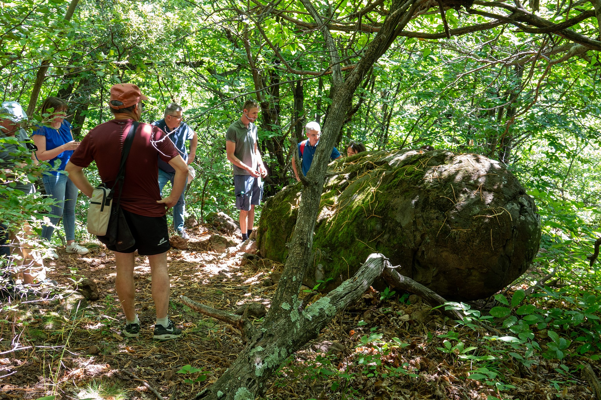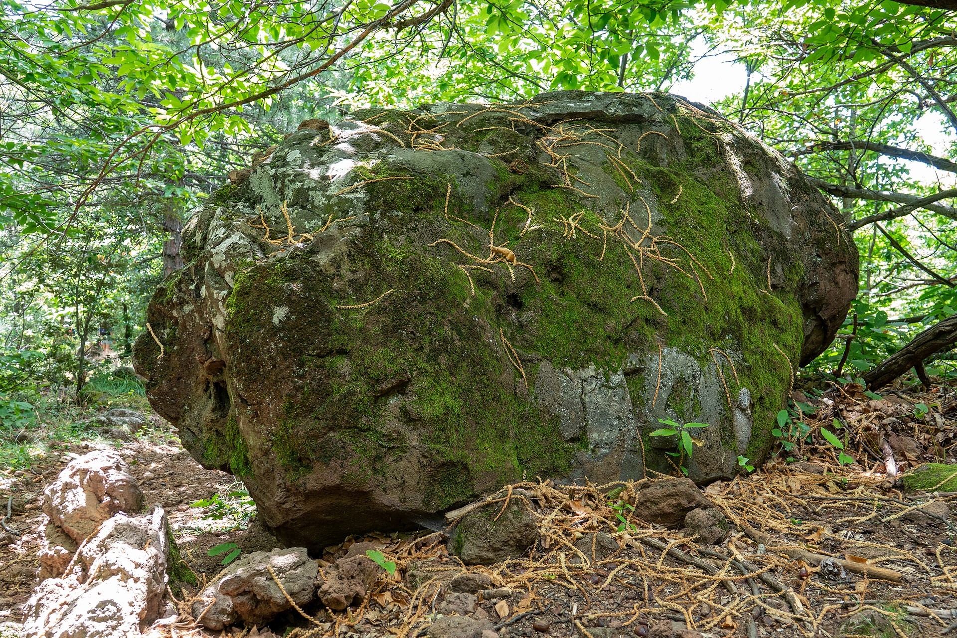 Curiosité géologique unique dans le Géoparc des Monts d’Ardèche, la bombe volcanique du Souilhol pèserait entre 7 et 10 tonnes pour 1m3