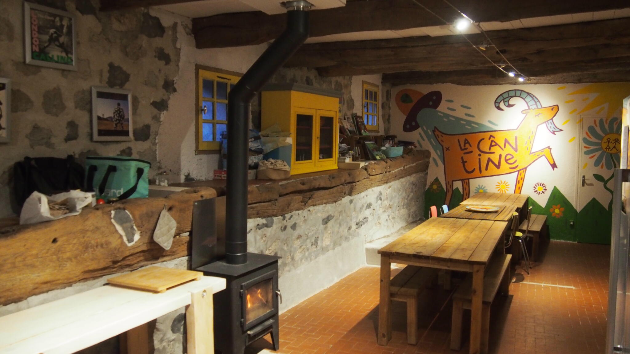 You'll find a common room, heated in winter by a wood-burning stove, with a kitchen and everything you need to prepare breakfast, meals etc... In fine weather, outdoor tables are available, as well as a barbecue and gas plancha. Lounge area with Wifi, board games.