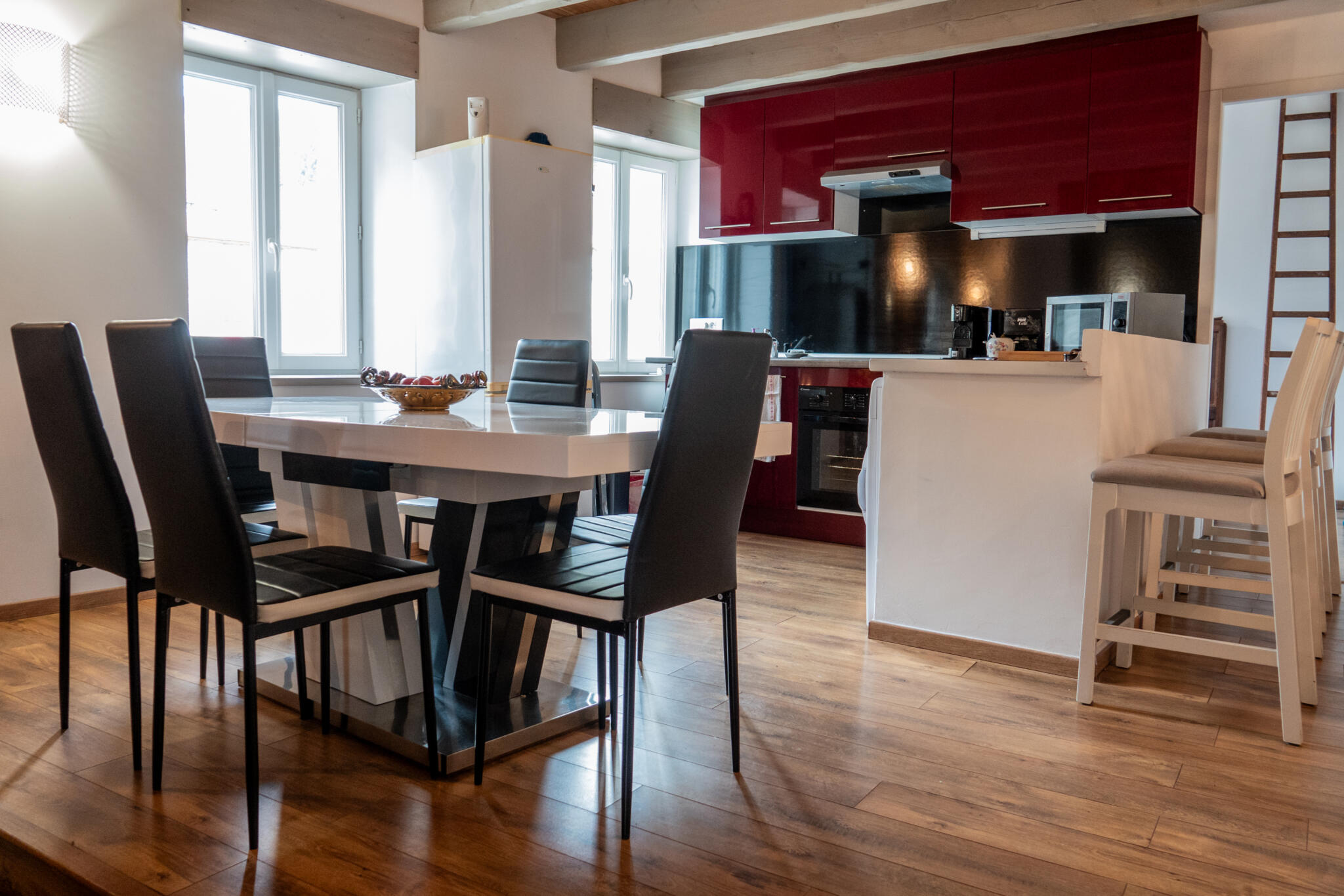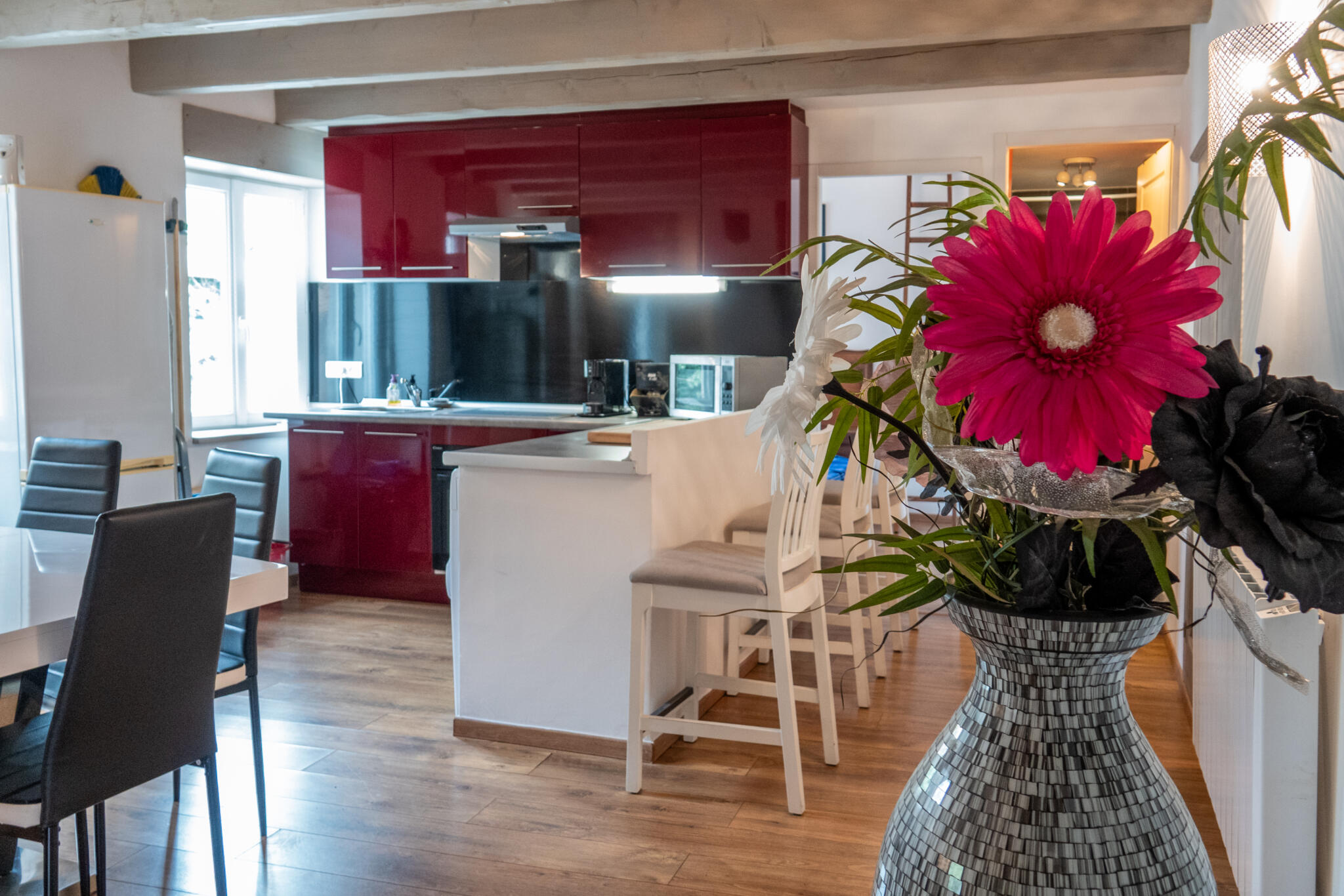 90 m2 flat with fitted kitchen, living room and 2 bedrooms, ideal for a family or group of friends.