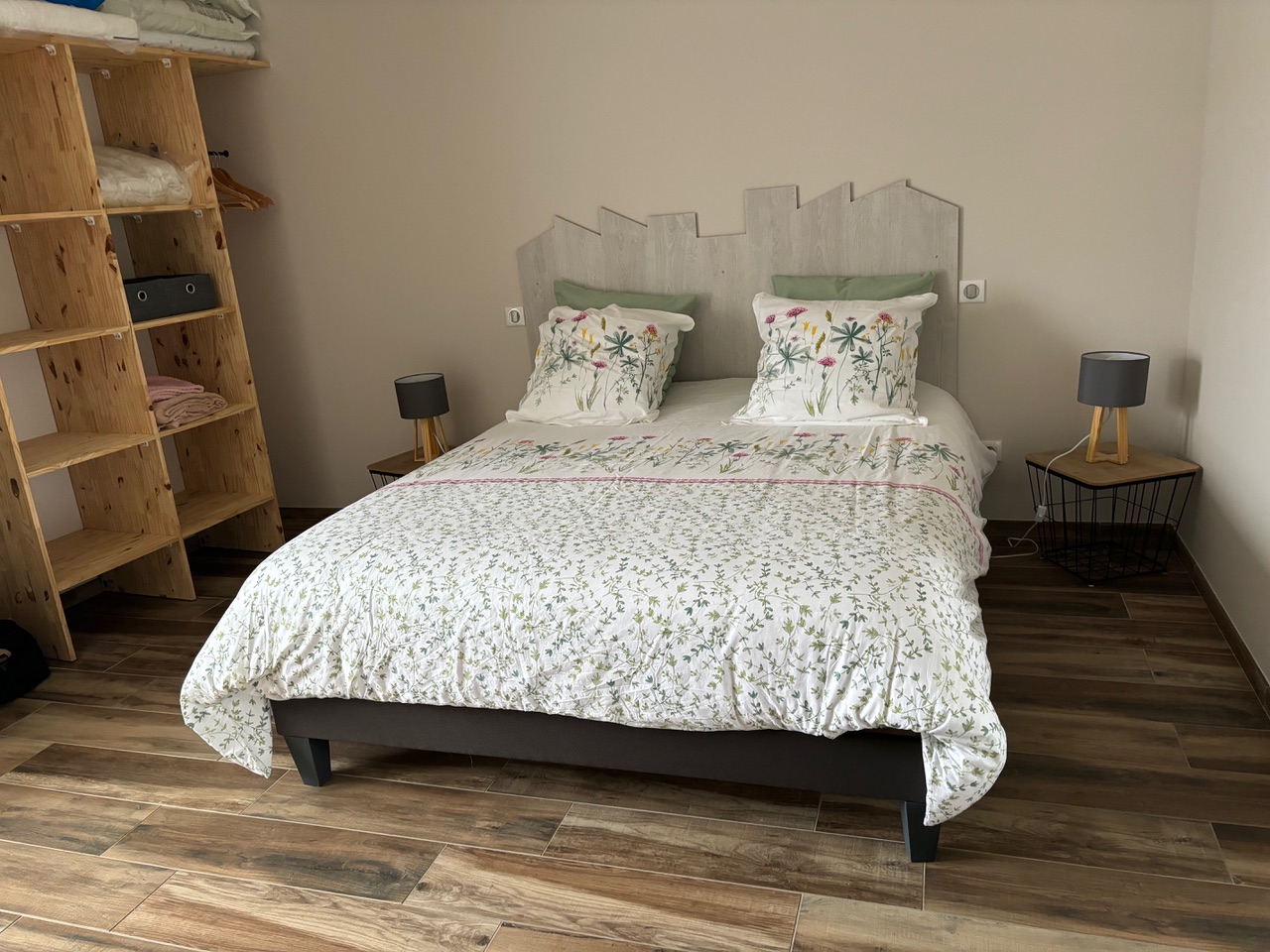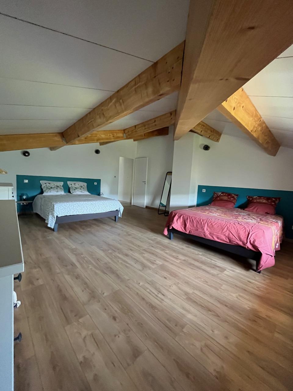 - à l’étage il y a une chambre avec 2 lits 160x200 , une chambre avec un lit 160x200, une salle de bain ,