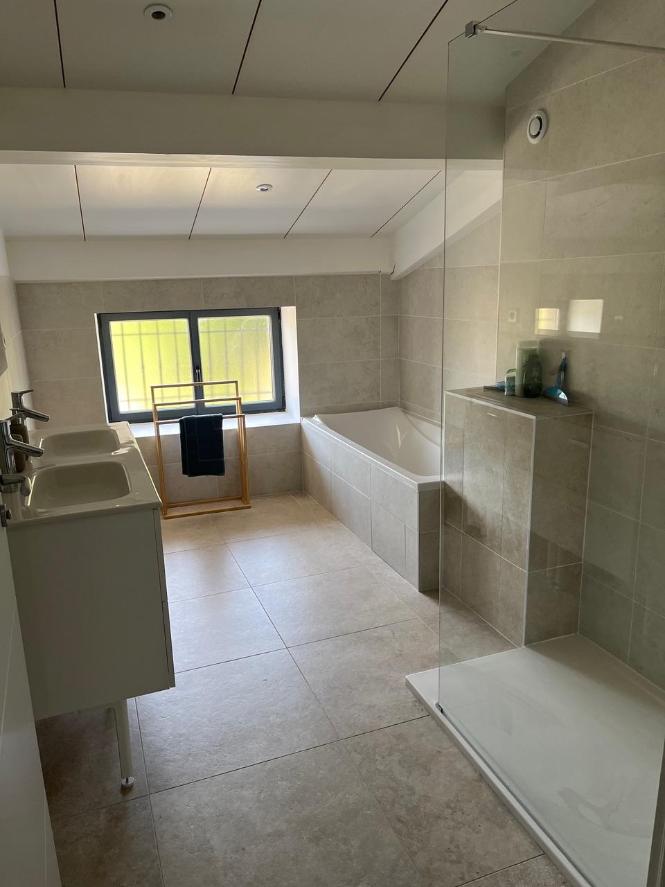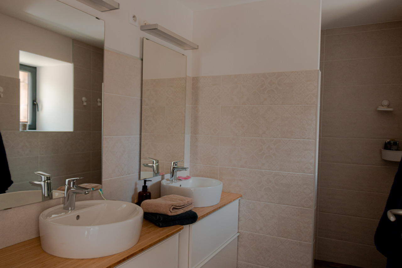 - une salle de bain avec double vasque et douche à l’italienne, ainsi qu’un wc séparé