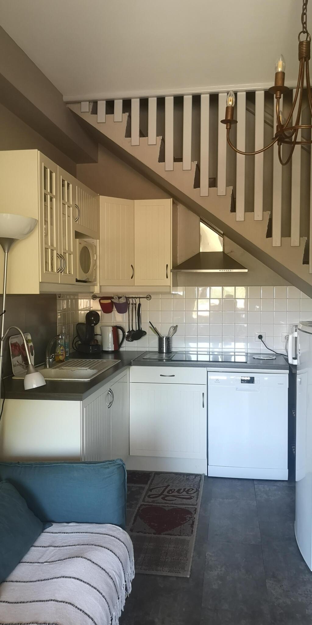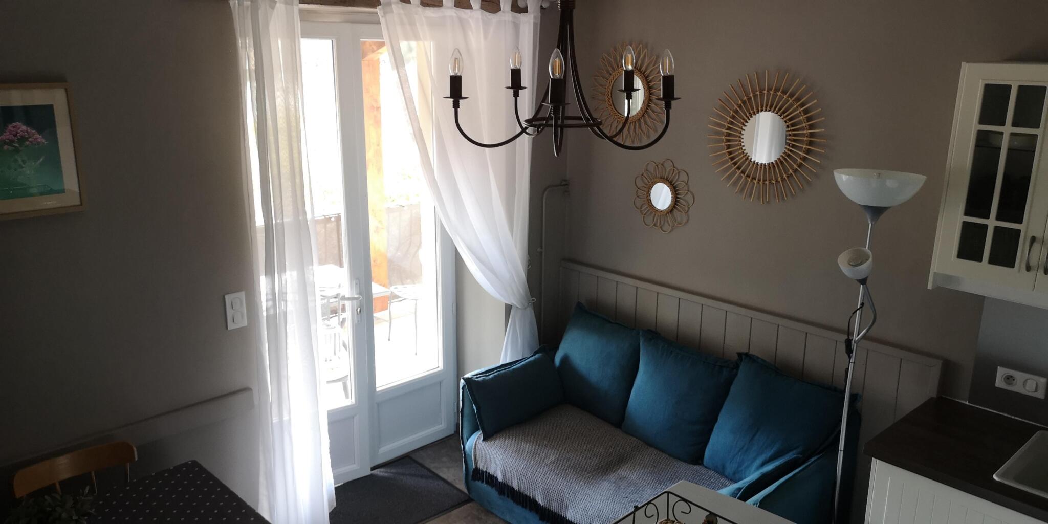 Gîte duplex de 50 m² avec terrasse couverte indépendante, jolie vue sur les collines. Situé au 1er étage de la maison en pierres du propriétaire.