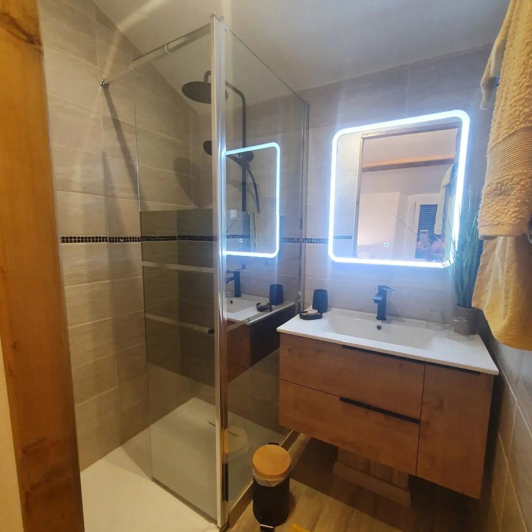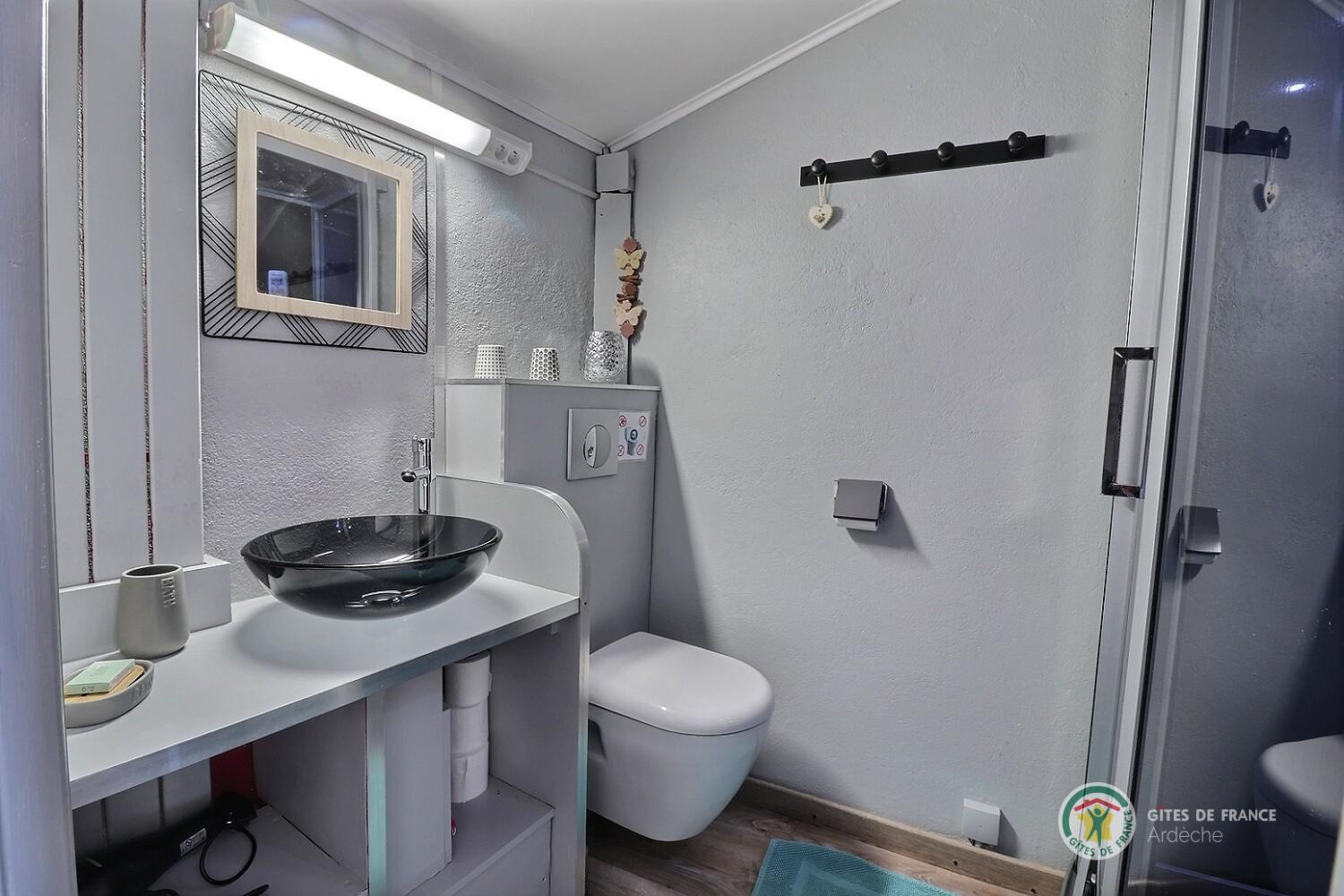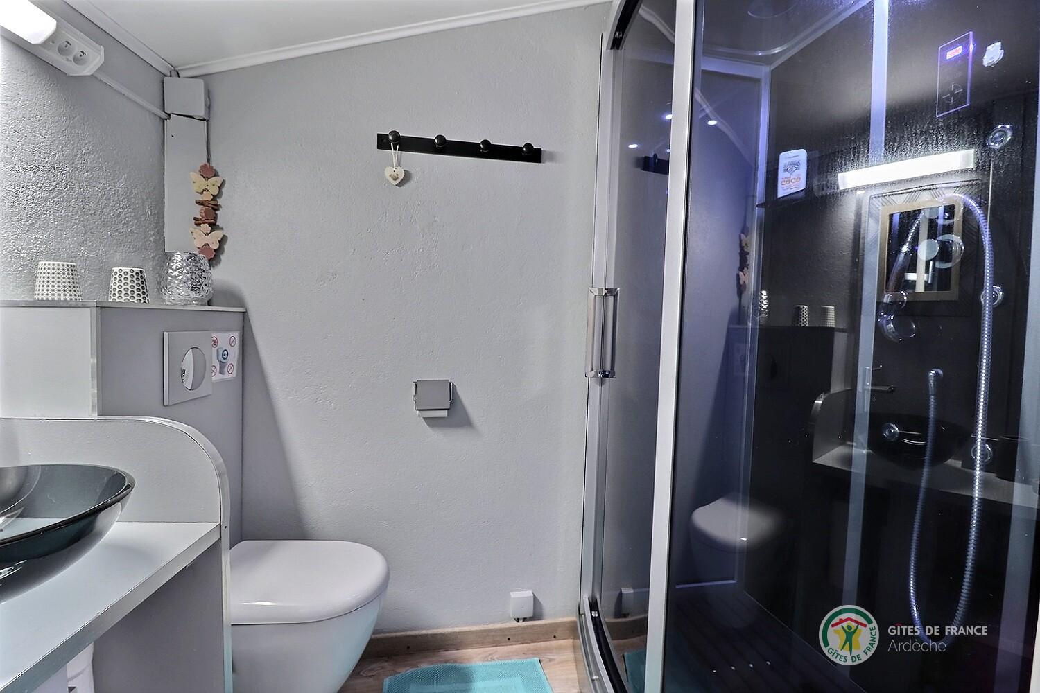 La 1ère chambre "Ladenne" est équipée d'un lit en 160 (modulable en 2 lits de 80 sur demande), d' une salle d'eau privative avec cabine de douche à jets et toilettes.