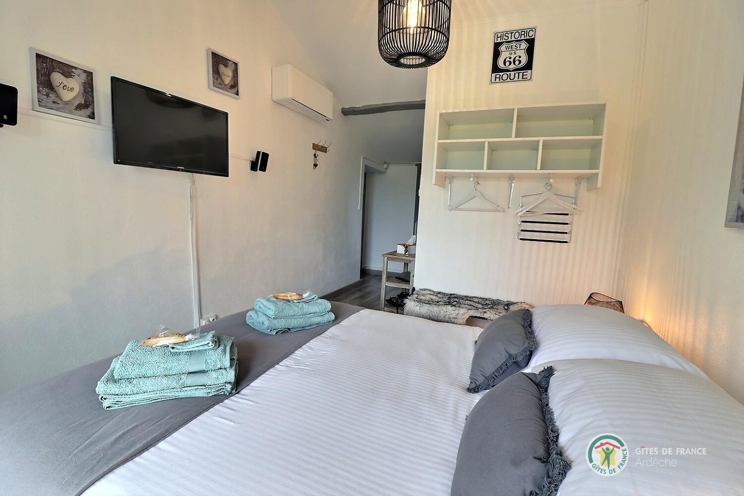 Toutes deux ont la climatisation et une télévision à écran plat. Draps et linge de toilettes fournis, lits faits à l'arrivée.