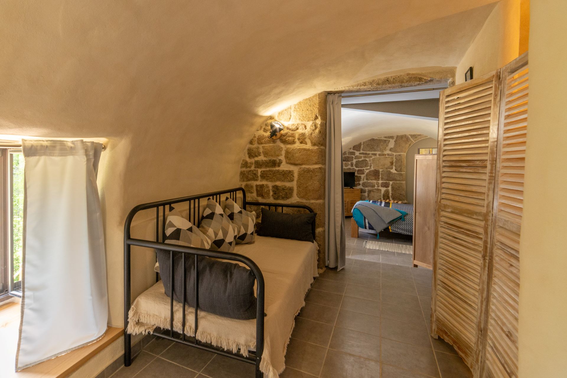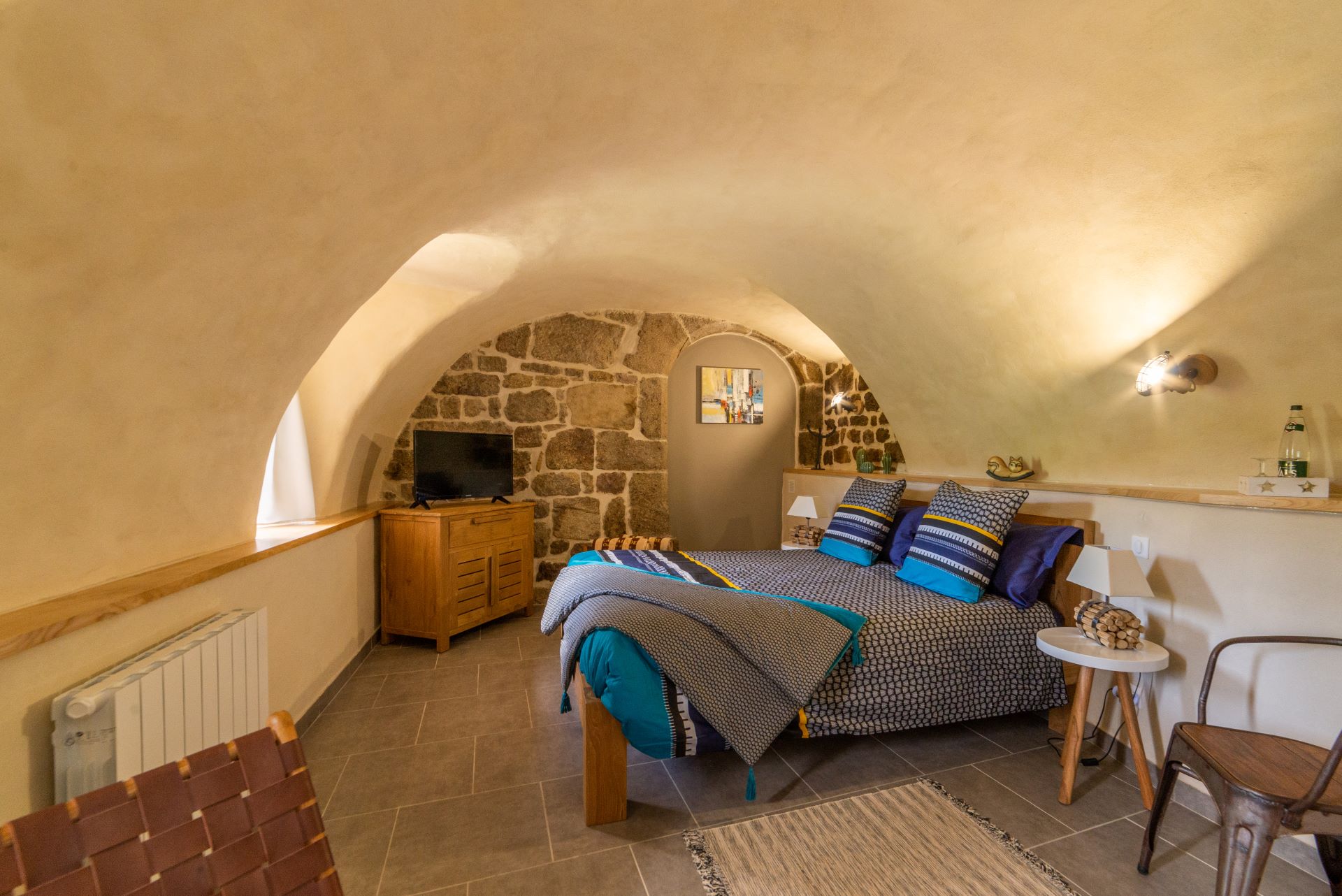 Tombez sous le charme de la chambre Chanvre, située dans notre maison au cœur du PNR des Monts d’Ardèche. Entrée indépendante, 25 m² avec Lit 160x200, banquette-lit 90x190, une sdb et un petit coin bureau. Terrasse privative avec un escalier en pierre.