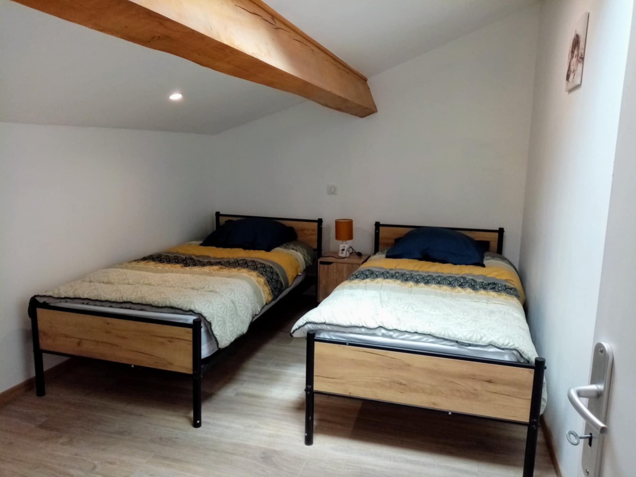 2 chambres à l'étage (dont 1 avec télévision) avec 4 couchages, lits de 90. Draps non fournis.
