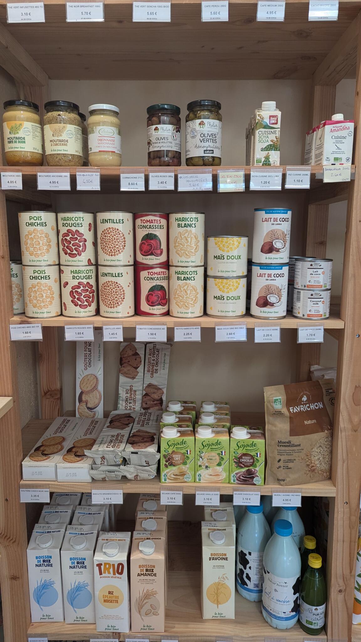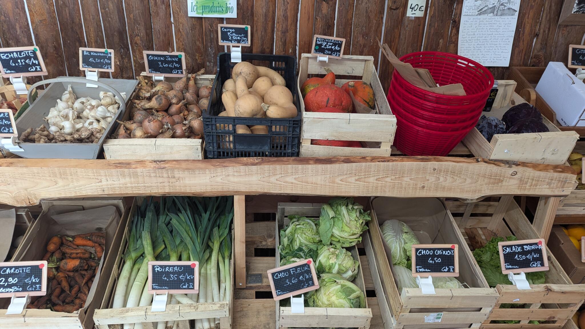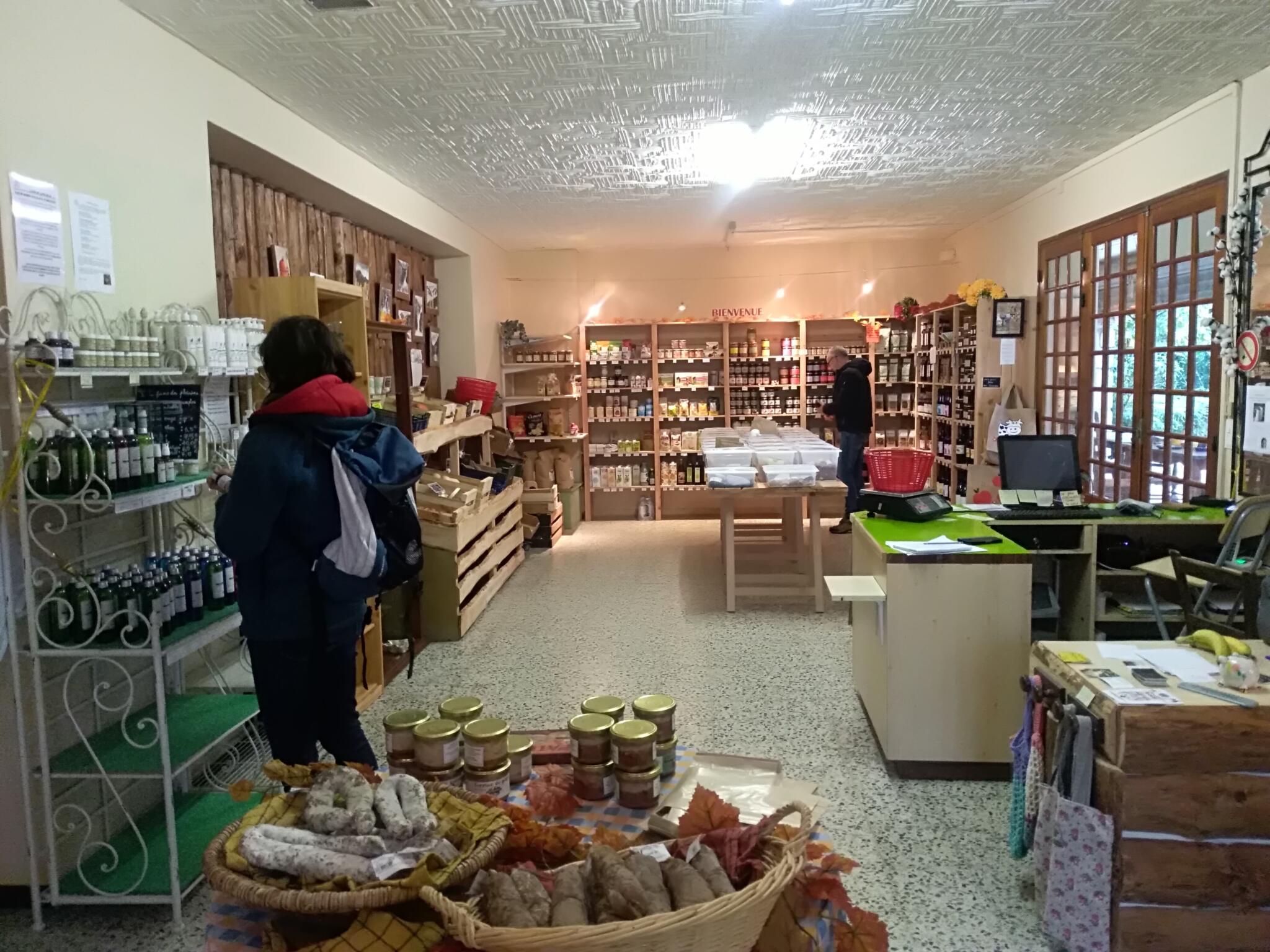 Un lieu de rencontre de producteurs et artisans locaux qui vous proposent des fruits, des légumes, du pain bio, du miel, confitures, jus, produits de la châtaigne, sirops plantes aromatiques, charcuteries, laitages et fromages, bières, vins, café, chocolat, hydrolats cosmétiques, de l'artisanat : poterie, bijoux, feutre, créations laine... Et aussi son épicerie et du vrac : fruits secs, céréales, légumineuses.