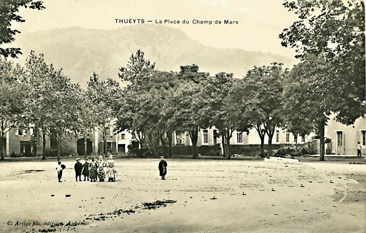 Centre du nouveau village, Mairie, Poste, commerces, hôtels, école publique. Lieu de détente (jeux de boules, fêtes, vogue…) et de rencontre. Autrefois : foires et marchés aux fruits importants (cerises, prunes, châtaignes…). Actuellement : marché tous les vendredis.