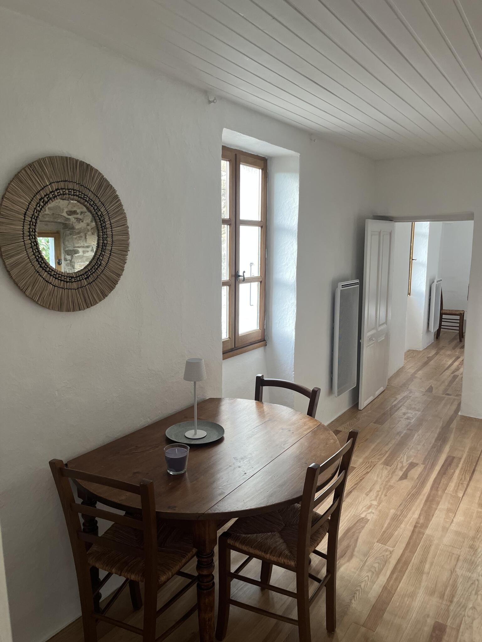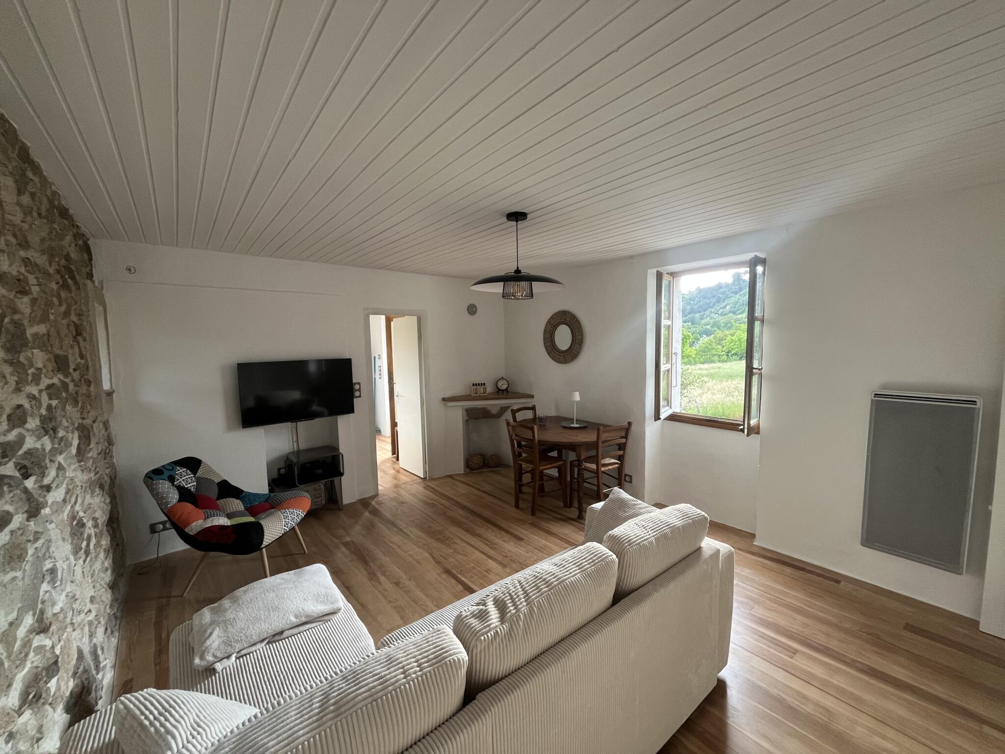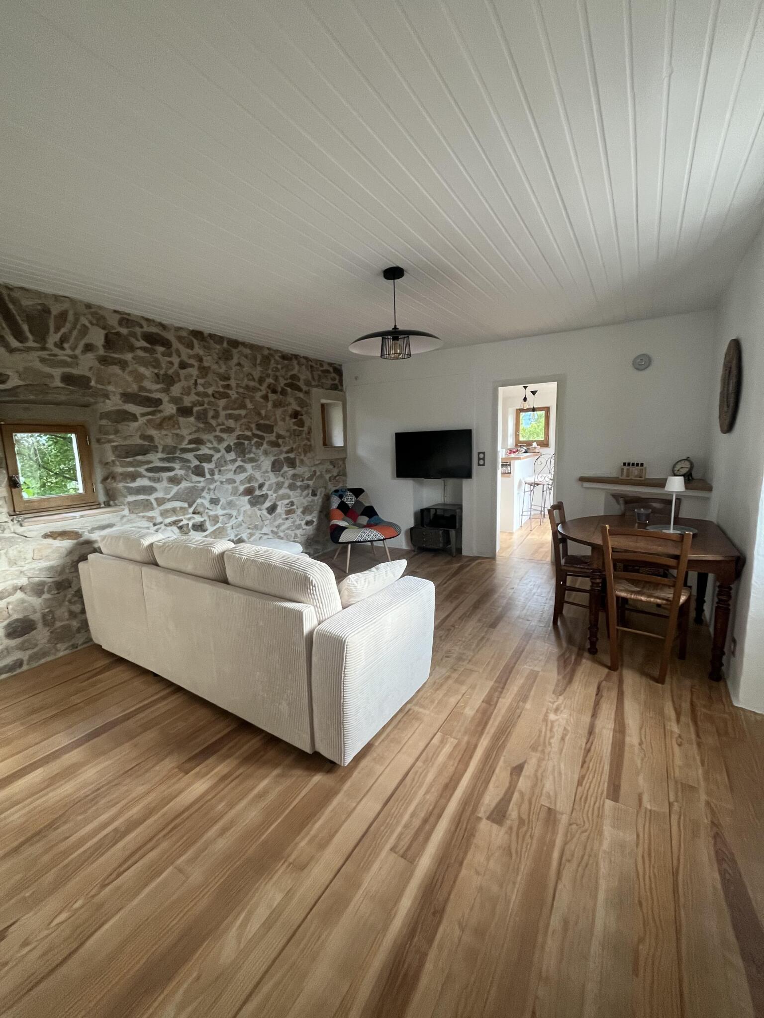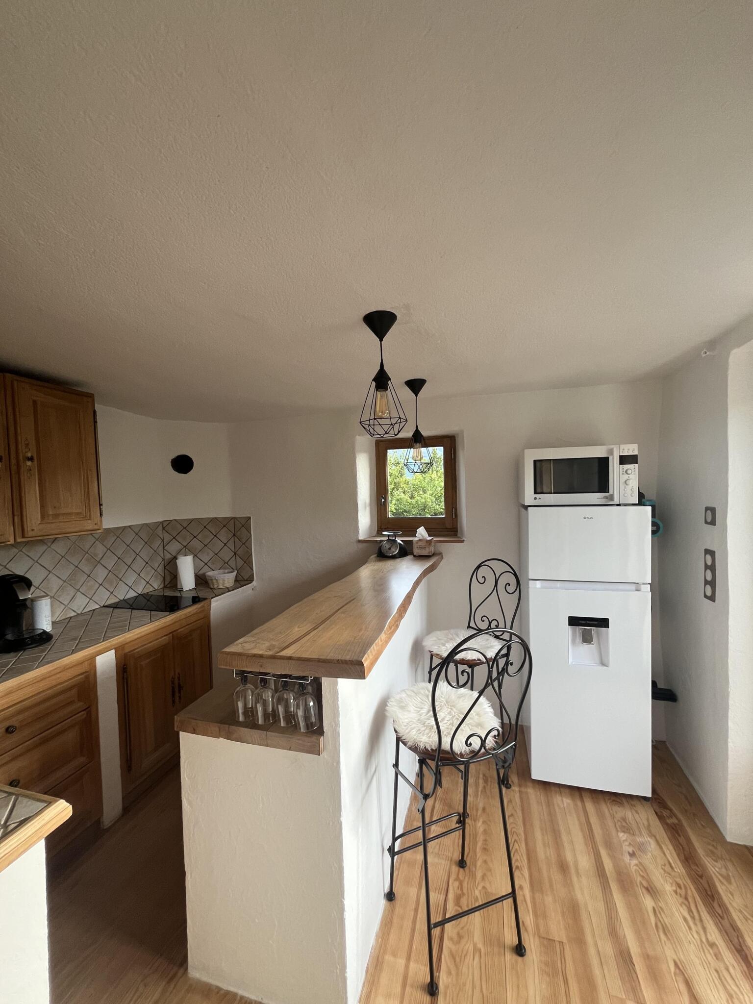 Possède une pompe à chaleur/clim neuve. Le chemin d’accès vient d’être refait et est accessible très facilement en voiture. Literie de la chambre neuve en 160x200cm, matelas Bultex de qualité Douche à l’italienne avec colonne et pommeau neufs. WC séparé de la salle de bains Salon avec un mur pierres apparentes très chaleureux comprenant un canapé trois places. Table à manger 4 places. Télévision écran plat connectée Internet fibre inclus Cuisine équipée avec four, plaques induction, micro-ondes et lave-vaisselle. Petit balcon avec plateau et tabourets type mange debout pour déjeuner face au paysage. Machine à laver disponible dans la cave. Terrasse extérieure sous un arbre avec table et barbecue.
