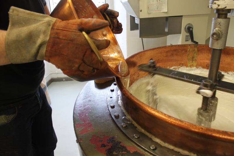 Notre fabrication à l'ancienne s'effectue dans des bassines et des chaudrons en cuivre avec des matières premières rigoureusement sélectionnées : miel de lavande et de châtaignier d'apiculteur Ardéchois