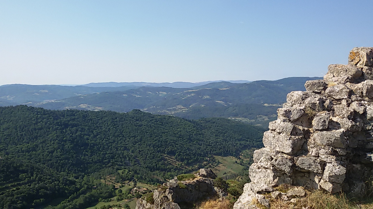Des ruines du château de Rochebloine, découverte d’un magnifique panorama sur la vallée du Doux, le Mont Mézenc, le Mont Gerbier de Jonc et sur la chaîne des Alpes.Table d'interprétation du paysage et des cultures en terrasses.