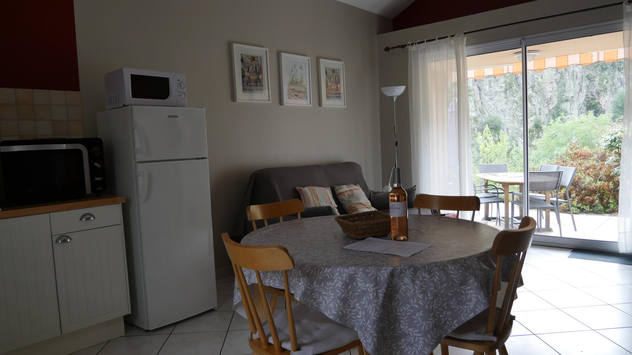 2 chambres (1 lit 160 et 2 lits 90), sdb, wc, cuisine ouverte sur le séjour.